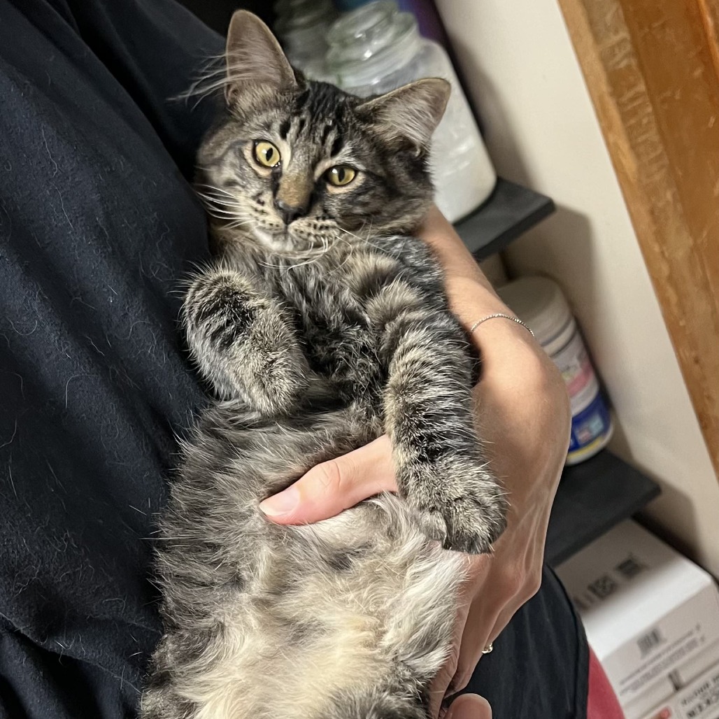 Meet Bear, the definition of a furball of love. He’s crazy in the best way possible and can play forever, even by himself. He’s outgoing, friendly, loving, cuddly, and independent all at the same time. He might even sneak in a little kiss here and there. Bear is super chill and can be held without fussing. He’s so sweet, he’ll stare lovingly into your eyes for what feels like forever. His favorite pastimes include playing fetch, batting around ice cubes, and rolling around on your feet just to make sure you’re paying attention to him. Because of his high energy levels and his love for his siblings and my resident cats, he would do best in a home with other cats. He's very bonded with his littermates, so if you're thinking about adopting more than one kitten, this little crew would be perfect together. His siblings’ KR IDs are: KRLA-A-87199 Rocco KRLA-A-87200 Gigi KRLA-A-87202 Fifi Please contact the foster at 13sheilag@gmail.com