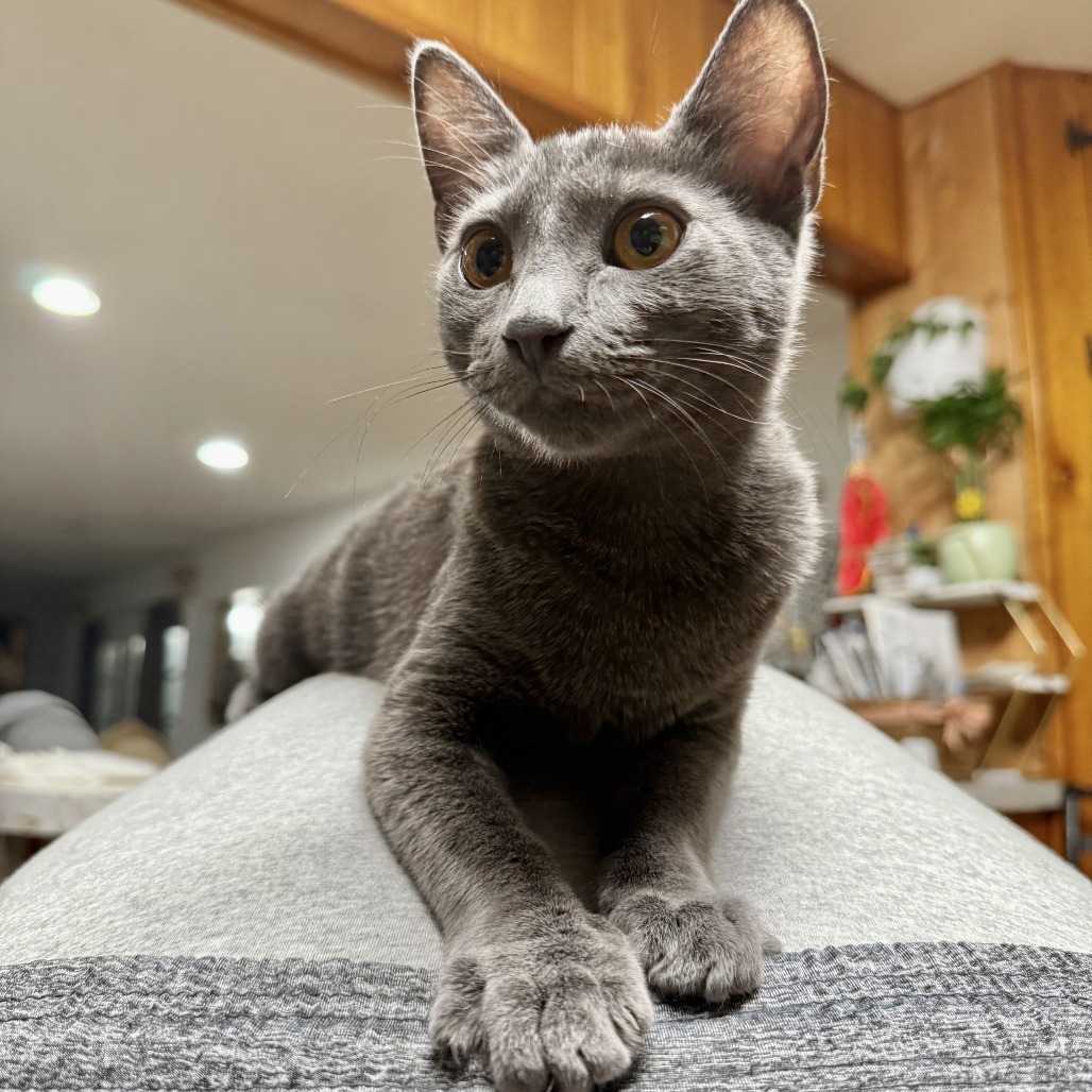 Fifi is the definition of a shadow, she loves her person and will follow you around squeaking at you until you give her attention. She’s super affectionate and loves to cuddle, be held, and get picked up. Don’t be surprised if she ends up on your shoulders, it’s one of her favorite hangout spots. If you get your face close enough, she might even sneak in a lick or two as a little kiss. Her favorite pastimes are playing, zooming around, doing flips as she jumps for her toys, and curling up in your lap when she’s ready to relax. Fifi is great with other cats and would do best in a home with other feline friends. She grew up with three siblings and has also spent time with my resident cats, so she's used to having company. She’s very bonded with her littermates, so if you're thinking about adopting more than one kitten, this little crew would be perfect together. Her siblings’ KR IDs are: KRLA-A-87200 Gigi KRLA-A-87201 Bear KRLA-A-87199 Rocco Please contact the foster at 13sheilag@gmail.com