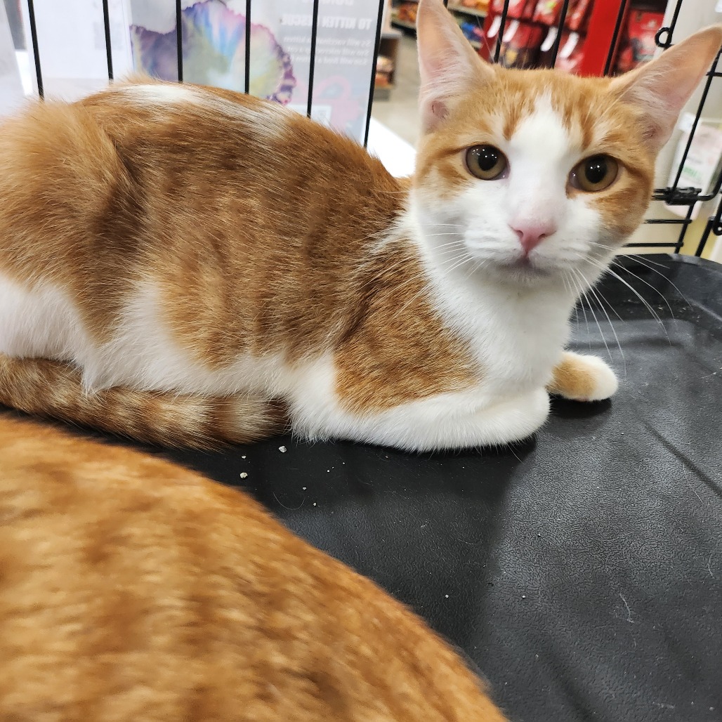 Layla is an adorable and rare orange and white female. She has a sweet personality, but can be a little shy at first. When approached and petted, she purrs and enjoys the attention. At adoption events in a petstore in a cage with bright lights and lots of activity, she sits quietly, undisturbed. She was rescued after she was abandoned in a house with her two brothers, Lucas and Landon (they have separate listings). They are not a bonded family, but she needs to be with one of her brothers or another cat. The person who rescued Layla and her brothers had no resources to get them adopted, so a KR volunteer helped by taking them into foster care. Please contact the foster at evegan@gmail.com