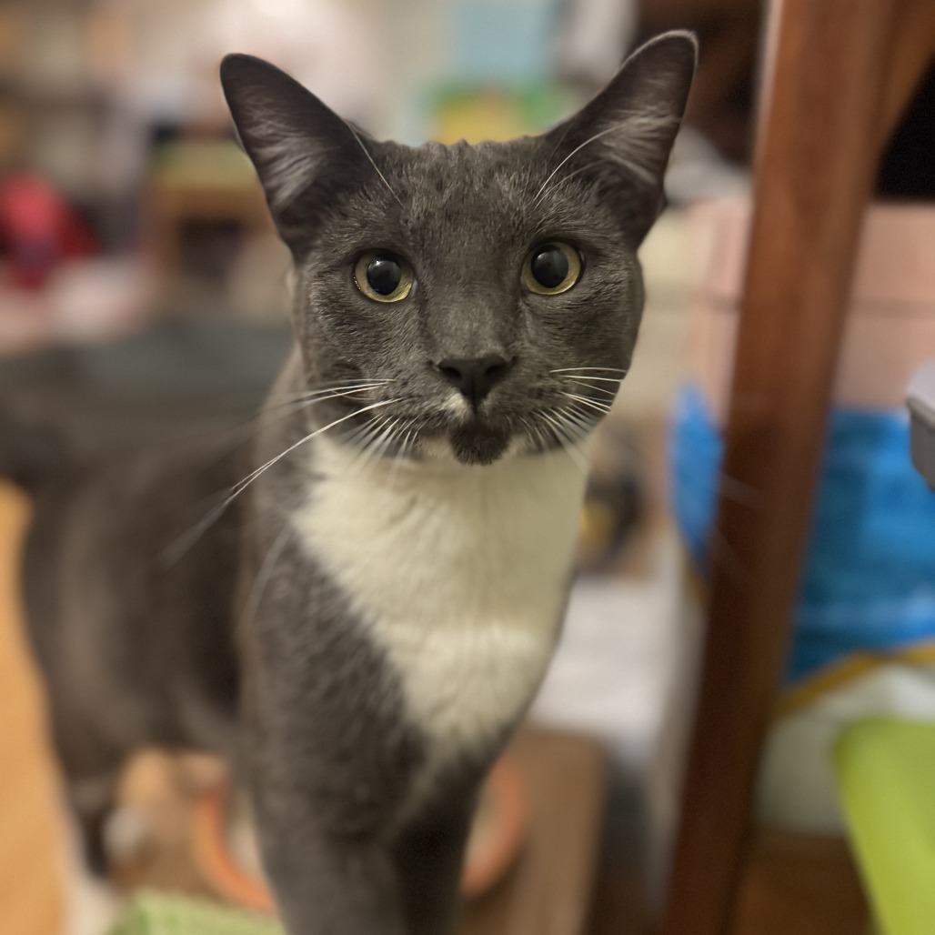 Miso is a sweet and shy boy. He takes a while to warm up to you but once he does, he is a total love bug! He will walk up to you and bump you with his head; that’s his way of asking you to pet him. He does get easily spooked by loud noises and sudden movements so he would do well in a calmer, quieter home with no young kids. He enjoys exploring and is curious about many things. He eats wet food but also enjoys kibble as well (he loves the crunch!) and his favorite snack is churu. He enjoys seeing water so don’t be surprised if he follows you to the bathroom or kitchen! He has the cutest meows and sometimes he likes to meow as he looks outside the window. He really enjoys a nice seat by the window where he can look out at the birds and feel the breeze. He loves playing with his many toys with his sibling and his favorite toy is the feather wand! When he is playing with that, he can jump really, really high! Please contact the foster at Phoenix_river@hotmail.com