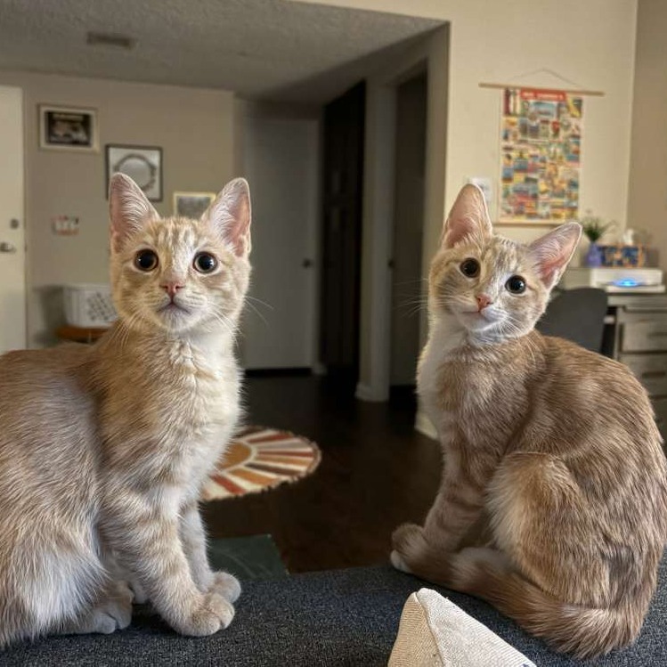 Gilligan and Skipper, KRLA-A-87234, are a bonded pair of orange kittens who do everything together. They’re about as sweet as it gets, always ready to curl up in a lap or snuggle against your shoulder. They love being around people and follow their favorite humans from room to room, chatting the whole way. These two are curious, playful, and smart. They explore new places with confidence and check in often to say hello. They get along well with other cats and are gentle with small dogs, so they’d fit beautifully into a home that already has pets. Gilligan and Skipper are looking for a home with people who will keep them together and enjoy their warm, friendly personalities. They will fill a home with affection, fun, and constant companionship. If you’re hoping for loving pets who bring out the best in each other, these boys are the perfect match. Please contact the foster at abostwick24@gmail.com