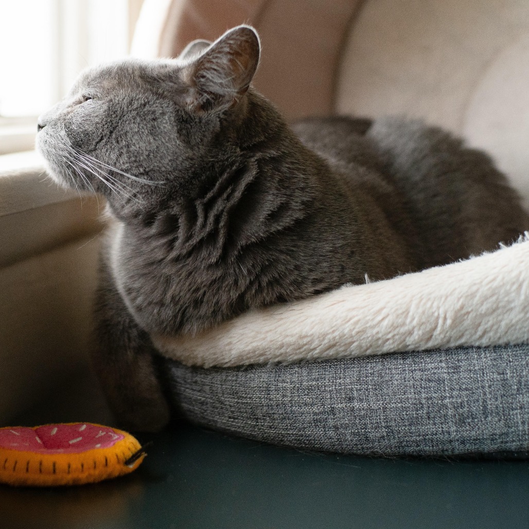 Backpack is the ultimate lap cat. He's a softie at heart who wants endless cuddles. Usually you'll find him chilling by an open window, but if you sit down on the couch he'll run across the room and jump up to your lap. Backpack is happiest as an only cat-- he wants to be king of the castle and receive your undivided attention. He still has his guard up from his time living outside, so he needs a quiet home and an experienced cat owner. He loves people, but he's easily startled and can be reactive. He also has mild chronic health issues which are being managed with diet and medication. Underneath it all though, he's a total marshmallow. If you're looking to spend hours curled up on the couch with a cat, Backpack is the one for you. Please contact the foster at astle.maggie@gmail.com