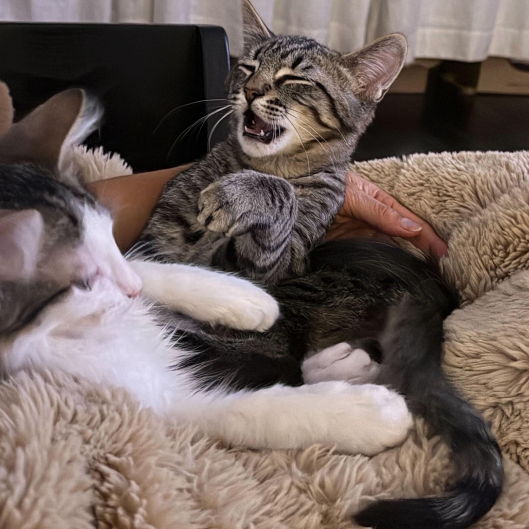 Meet Sadie, a gentle and observant tabby girl with a sweet, independent spirit. She may be nearly identical to her brother at first glance, but Sadie stands out with her adorable white paws and white chest — and her thoughtful personality. Sadie enjoys playtime and exploration but is also happy doing her own thing. When she chooses affection, it’s intentional and heartfelt, making those moments extra special. She is playful, calm, and steadily growing more confident each day. Like her brother, Sadie was raised as a bottle baby and is comfortable with people and affection, just on her own terms. She would thrive in a home that appreciates a kitten who blends independence with gentle love. Sadie is bonded with her brother Simon (KRLA-LA-87244) and must be adopted with him. Together, they provide companionship, comfort, and endless entertainment. Sibling Crew: Pan (KRLA-A-86978), Toffee Crumble Little (KRLA-A-85553), Ramona (KRLA-A-85419), Oreo (KRLA-A-85417) Please contact the foster at Tanksmom82@gmail.com