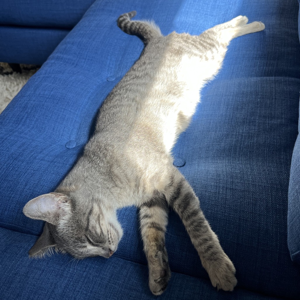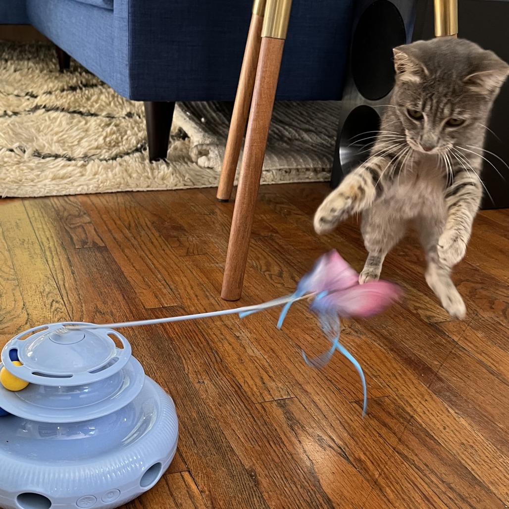 Scamp is an adorable, playful, affectionate 6 month old kitten looking for her forever family! She appeared on our porch looking for food, and quickly began hopping on our laps and purring. She's a real cuddle bug who will love following you from room to room purring at your feet, playing with toys, and finding a sunbeam to nap in. Scamp is great with kids and seems to get along with other friendly cats.