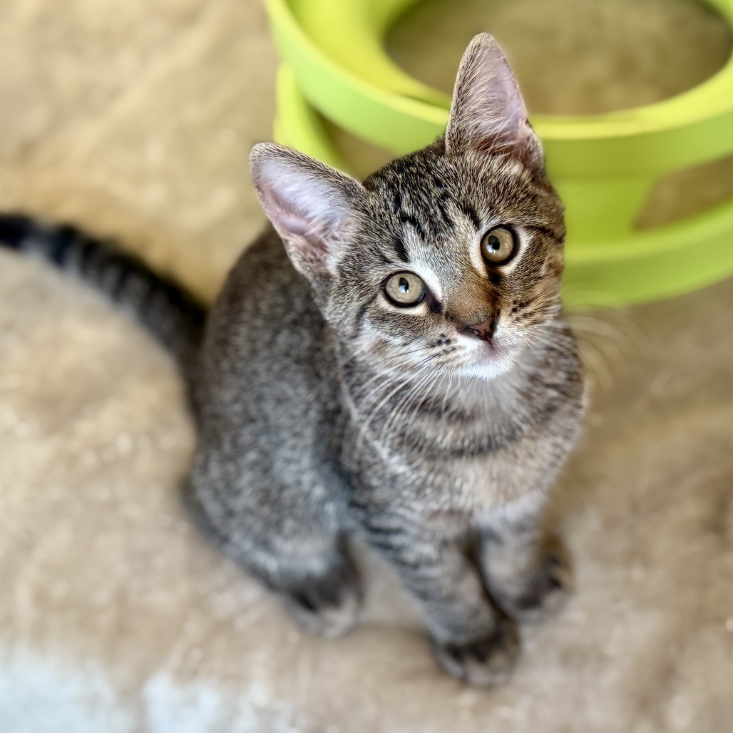 Blessing was lovingly bottle-fed as a baby, so she absolutely adores being held and cuddled. She’s confident when meeting new people and is a total lap cat when she’s not busy playing with her foster siblings. This adorable little girl has a lot of personality packed into her little body. Because she’s still very young, Blessing needs to be adopted with another kitten or join a home that already has a young, playful kitten. You’re invited to schedule a playdate and cuddle session with Blessing — come see for yourself what a special little sweetheart she is. Please contact the foster at kittyLINQ@gmail.com