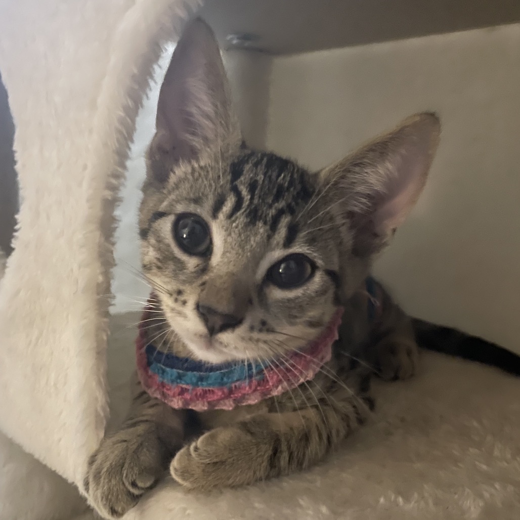 Rane is the sweetest brother to his siblings. Well-behaved and friendly, Rane has a balanced profile and gets along with everyone. Rane is playful with his sisters and brothers, and sometimes he likes to chase flies. While Rane is an adventurous charmer ready to break hearts, he is also a true mama's boy and loves to cuddle and take naps in the lap. Rane could likely be happy either as an only cat or living with other cats. Rane has a curious, smart mind, so he would do well in an environment where he has stimulation, such as a climbing tree and toys, without of course for getting kisses and hugs at the end of the day. Please contact the foster at annaliisa.alejandre@gmail.com
