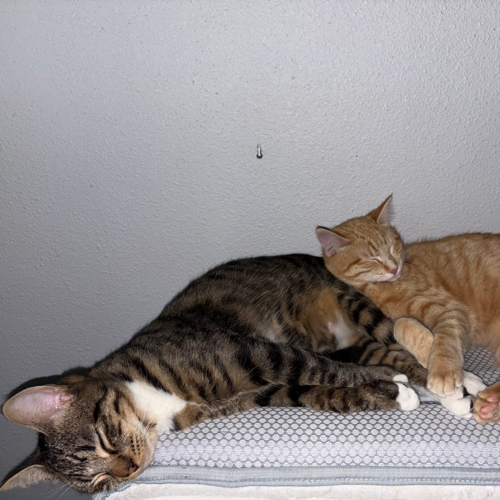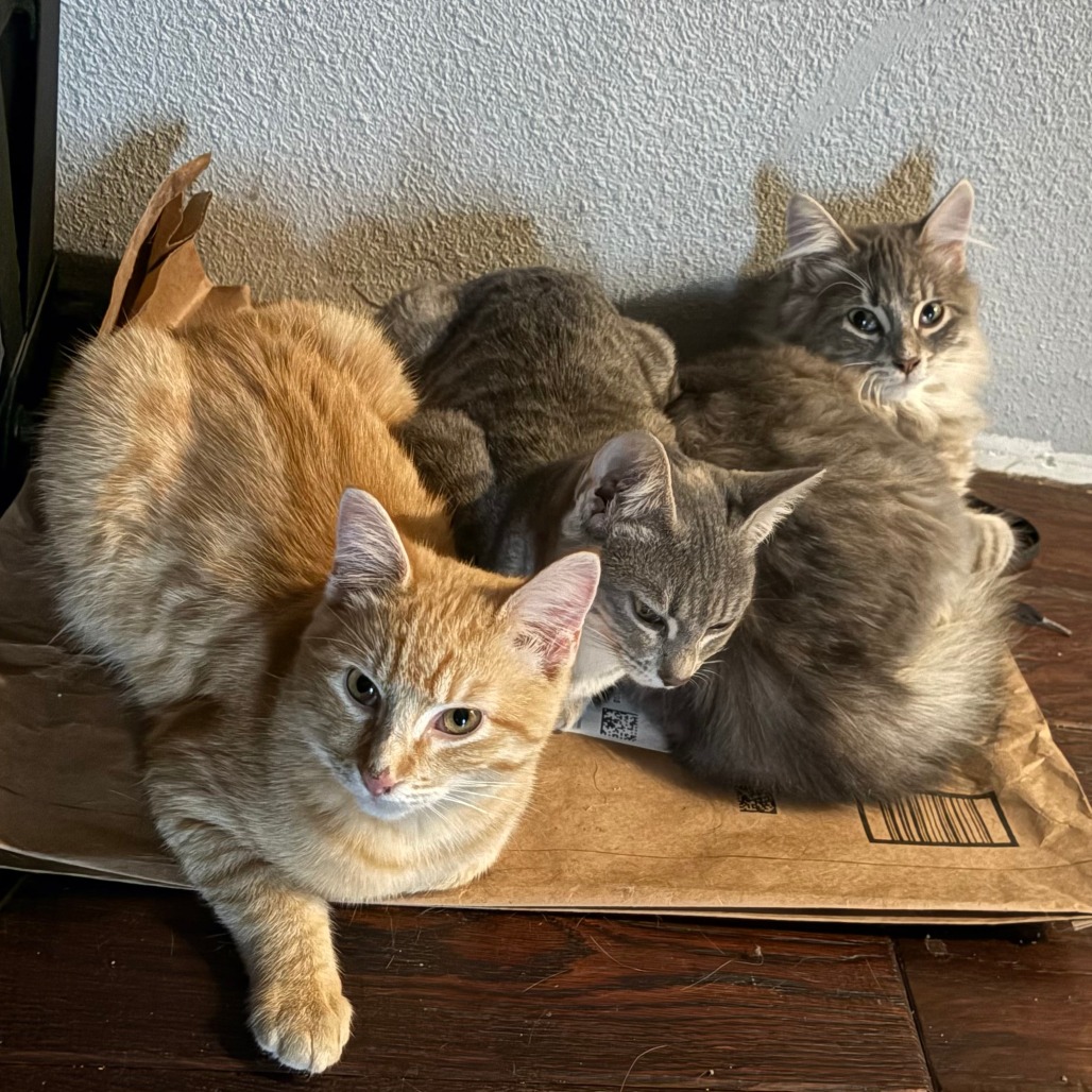 This playful and energetic boy fills his home with excitement and charm. He spends his days chasing his siblings, turning every moment into a playful adventure. Whether he’s darting across the room or pouncing on his favorite toys, he keeps himself happily entertained and always ready for more fun. Despite his energetic nature, he also shows a sweet and affectionate side. He confidently approaches his people for head rubs and cuddles, eagerly soaking up attention. He shows his happiness with loud, steady purrs whenever he receives attention, making his loving nature impossible to miss. He balances his high energy with a sweet, social personality and truly enjoys being around others. He thrives in a social environment and will do especially well in a home with other cats who can match his playful spirit. Please contact the foster at jasmineherrera.v@gmail.com