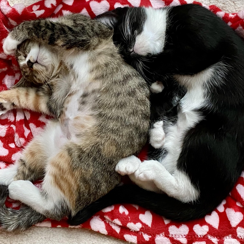 Taylor is pretty much the perfect cat. She is laid back, calm, available for pets, but never needy, and gets along with everyone. She has a loud instant purr and loves cuddles. Plus, she is totally gorgeous! Found as a baby stuck in a garden fence, she has always behaved as if being an indoor cat and being cared for by humans was just exactly right. She is great with kids and friendly to strangers. She should be adopted into a family with older kids until she is physically larger and wiser (at 6 months). She would like to be adopted with her best friend: Francis (Baby Orca), KRLA-A-87195, a spicy, floppy little tuxedo who is the “extra” to her calm, cool demeanor. When not chasing each other or wrestling, they can be found sleeping together. Baby Orca sometimes has his arm around her likely having fallen asleep mid-wrestle. Please contact the foster at rebeccabennettduke@gmail.com
