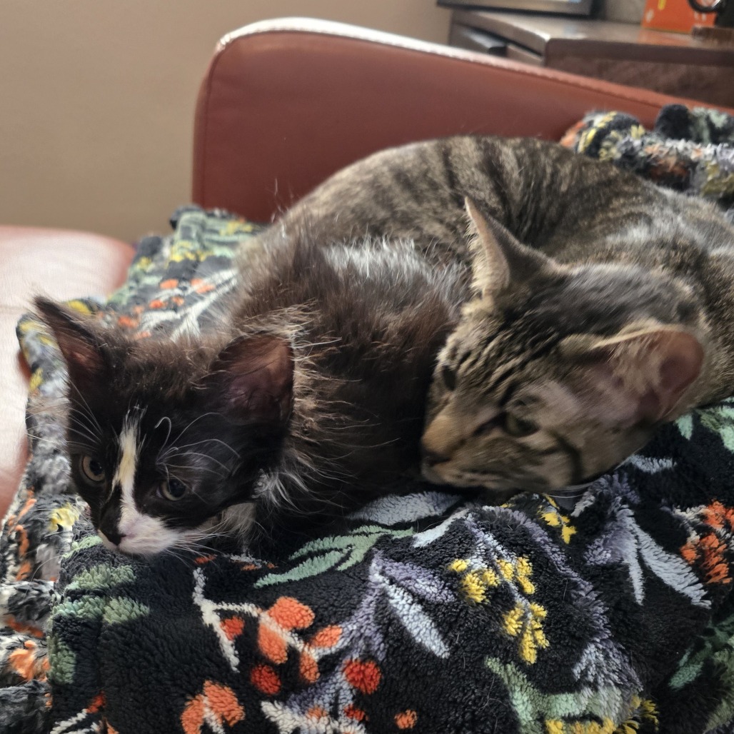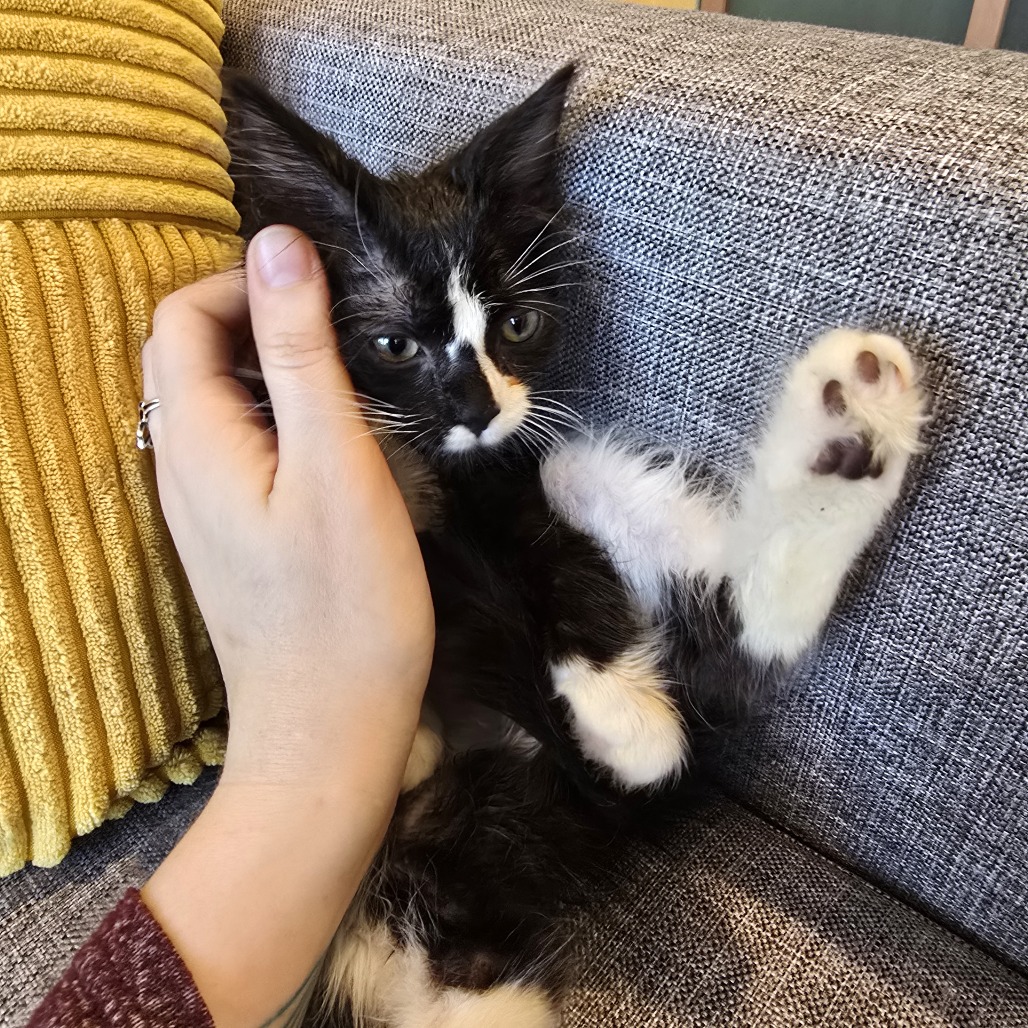 Meet Sage! An adorable fluffy tuxie, Sage is a perfect mix of affectionate and independent. She’ll be snuggly, purring up a storm, and then go explore on her own. This busy girl has things to do! She can’t spend her entire day curled up in your arms. Geez, human, get a life. But when she does settle down from chasing toys, wrestling with her siblings, and adventuring, she likes to curl up in a little ball next to your hip and fall asleep, so calm and peaceful. She has a precious marking on her nose – it looks like someone booped it and left a fingerprint. Due to her young age, Sage must be adopted with one of her siblings; KRLA-A-87368 Thistle, KRLA-A-87369 Alder, KRLA-A-87371 Heather, KRLA-A-87373 Jade or join a home that already has a young playful cat to be her friend. Please contact the foster at cassidyabrahamson@gmail.com