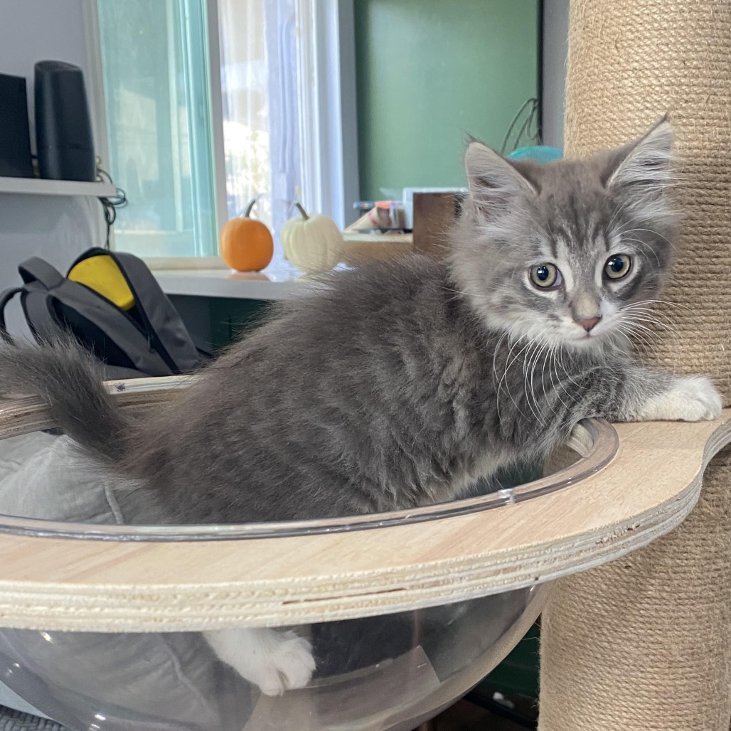 Auto is a brave and fearless little soul. He is not afraid to try new things or explore. He has energy for days and is extremely playful with his foster brothers or anyone that is willing to play. Auto is pretty passionate about all food and is not picky. He is super lovable and enjoys lots of cuddles. He really likes to nap snuggled up in comfy places, especially in the middle of a queen size bed. He’s great around other cats and dogs. Please contact the foster at Ansanchez1004@gmail.com
