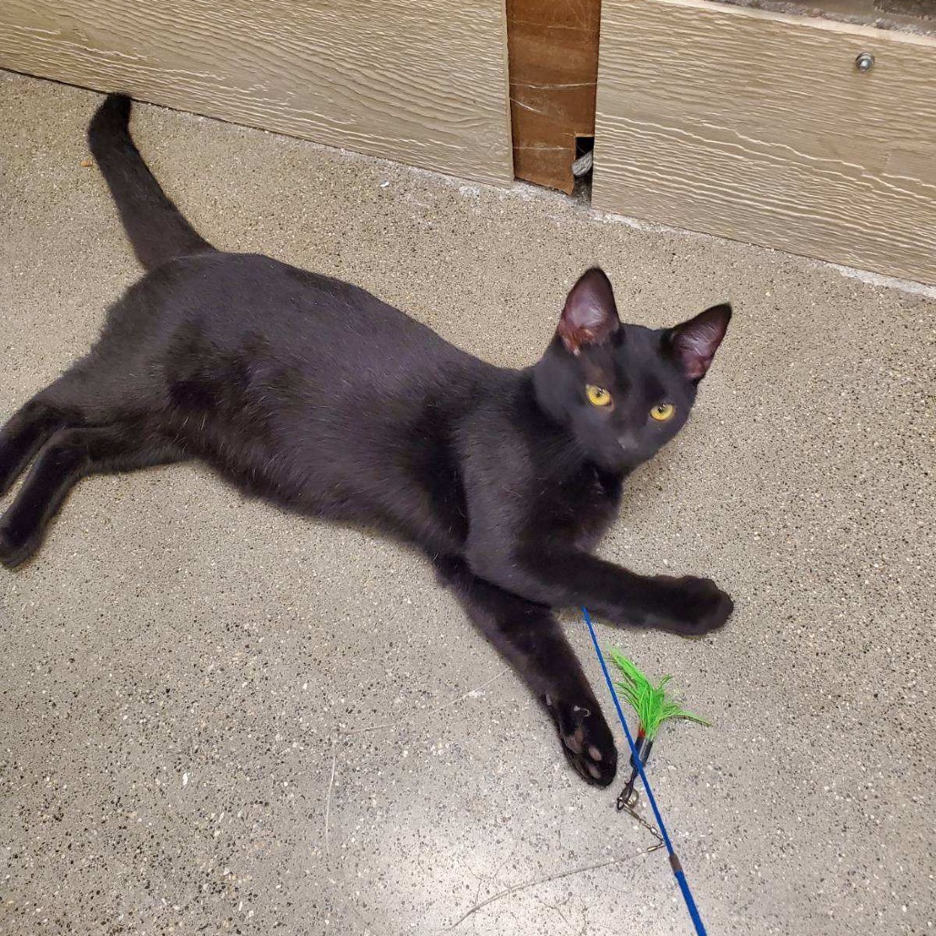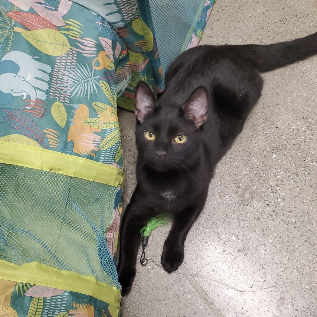 Shadow was rescued from a life on the streets by a Kitten Rescue volunteer and was placed in a foster home. Now happy and healthy Shadow is ready for his purrfect furever home! Shadow is a very sweet and beautiful kitty with a short sleek, all black coat, a house panther! Shadow is super affectionate with his humans and is even a lap cat! Shadow has a very easygoing personality and he gets along well with almost all other kitties. He is very young so he loves to play and would like another young playful kitty companion in his furever home. Shadow would also do well in a home with gentle loving children. He will bring lots of love and joy to his furever home. Please contact the foster at annmariehair@gmail.com