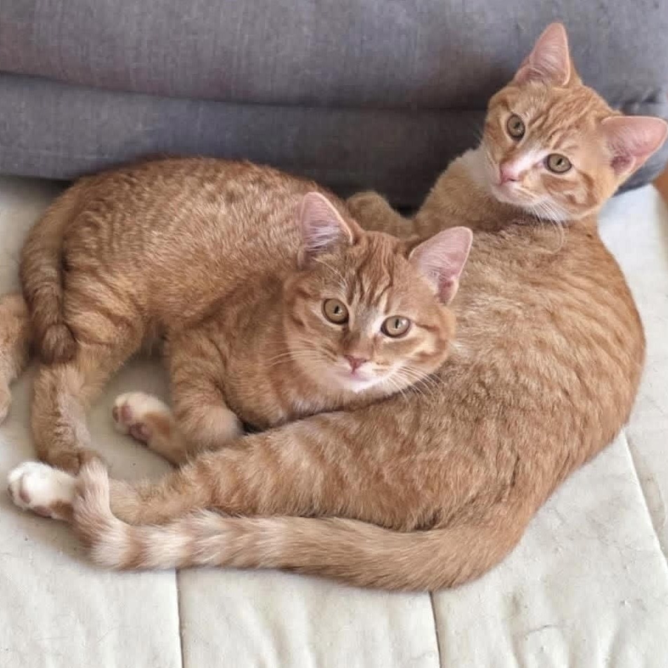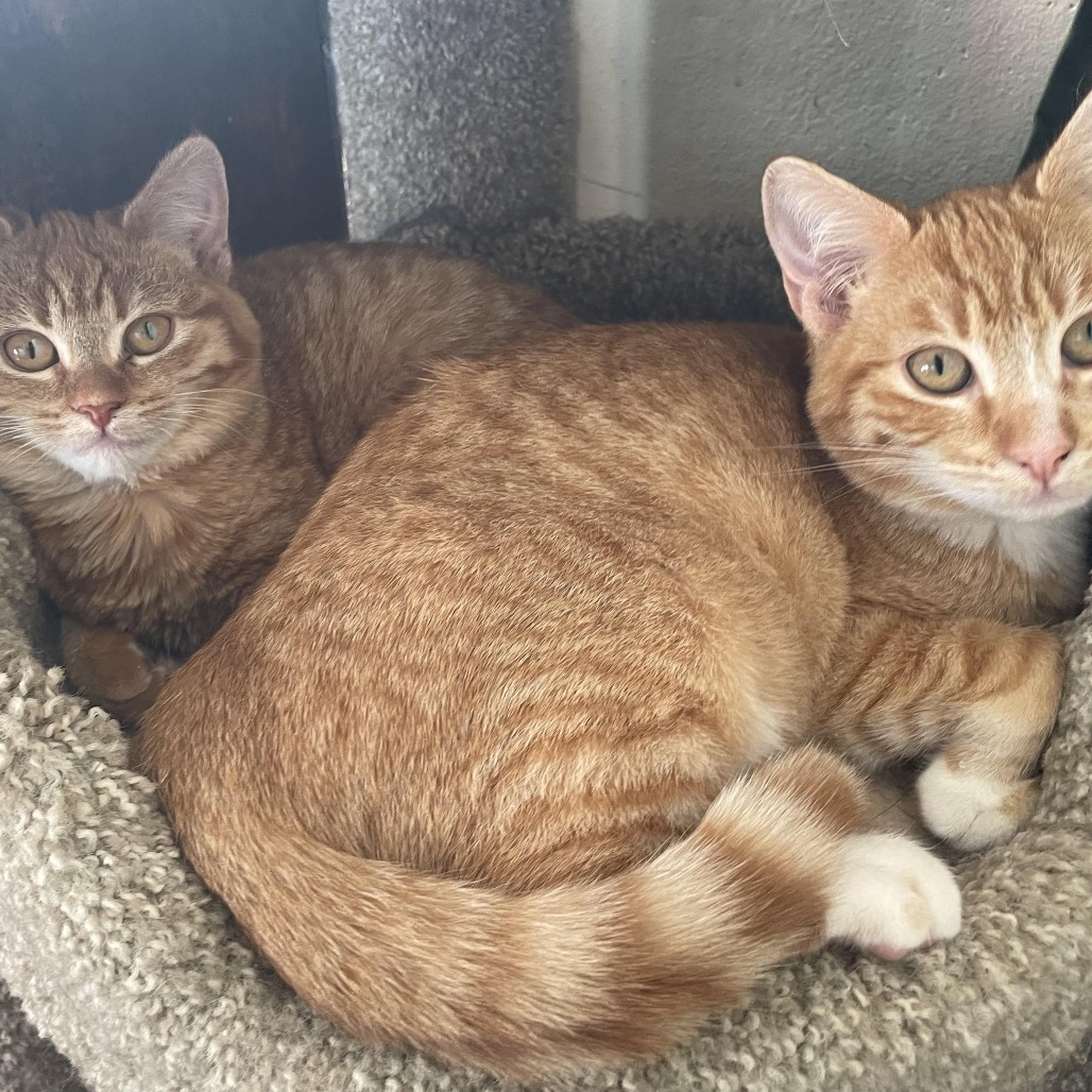 "Big-Nose" Kate actually has a tiny little button nose to go along with short tail and little sassy paws. Kate is a rare all orange tabby girl, and her big personality is just as rare and unique!! Her demeanor is fully thrilled with life and adventure as she and her bonded-brother "Doc Holiday" just love to play and chase little toys along the floor. Kate has become totally obsessed with playing with the ball-spinny-track toy, along with little bouncy springs that she holds in her tiny petite mouth and runs around with. Kate and Doc Holiday (KRLA-A-87428) must be adopted together and in exchange for becoming their forever humans, they promise to be living their 'prime' best lives with you to the fullest . Kate and Doc were previously living in the wild west of a feral colony where they were born, but ever since Kitten Rescue took them in, they've been having a real rodeo learning the wonders of indoor life and human affection. After adjusting for a few weeks, you'll be getting purry snuggles and couch companionship as a thank you for being patience with them. Kate and Doc say, "We'll be your Huckleberry"... will you be theirs in return? Please contact the foster at nibroka@aol.com