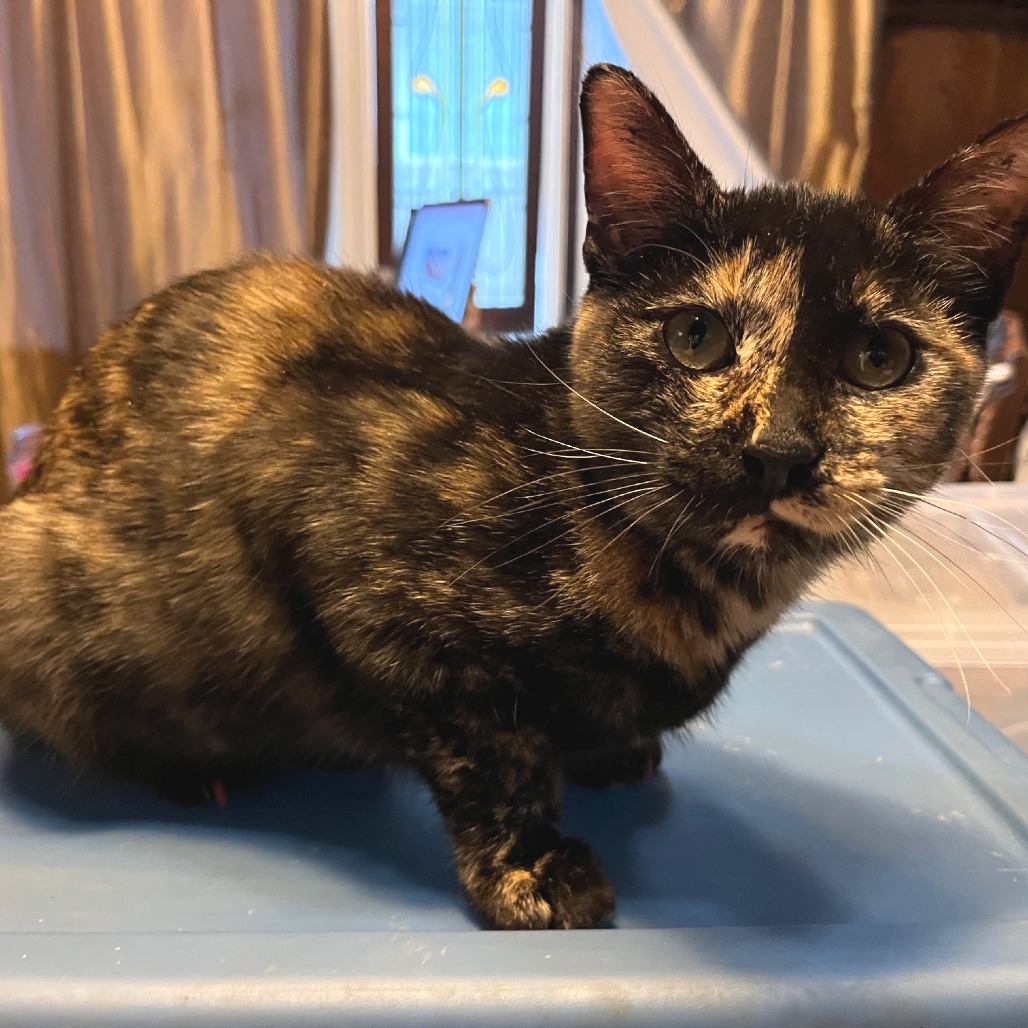 Amber was found los and hungry in South Los Angeles. After several weeks of posting and searching for her owners I began the process of getting her ready for adoption. If you love Torties with a lot of Tortitude, then this is the girl for you! She loves to be the boss of everyone, including cats that are more than twice her size. She loves to play and is quite talkative, especially when she's feeling her demands are not being met in a timely manner, including wanting cuddles. She seems to have hardly any fear, even the vacuum cleaner is only a passing annoyance to her. She is very friendly with new people and tolerant of other cats, although she seems to prefer to be an only cat and the focus of your attention. She likes to sleep on the bed at night and will lull you to sleep with her subdued purring next to you purring herself to sleep. Please contact the foster at piratekendra5000@gmail.com