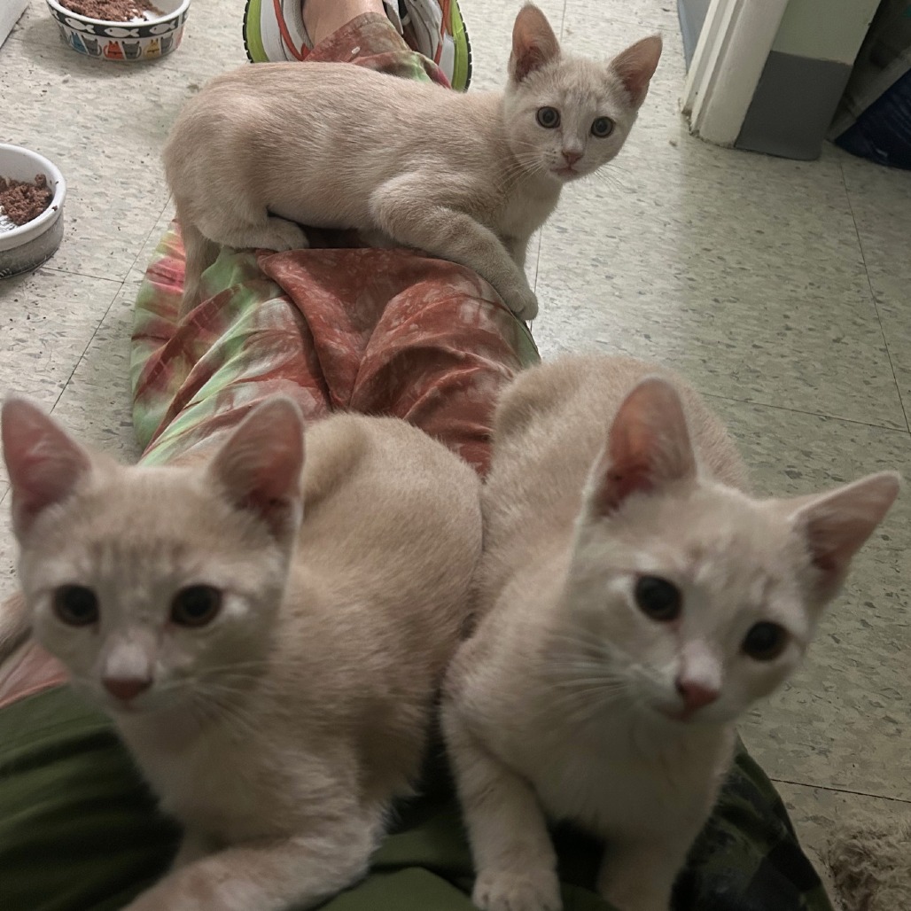 Rescued from a balcony while I was trapping. Caught and fixed mom , then grabbed this litter as they would have likely met with an early demise. Cliquot is a tad shyer than siblings but warms up nicely. Playful and cuddly champagne bubbly kitten! Please contact the foster at sinne@att.net