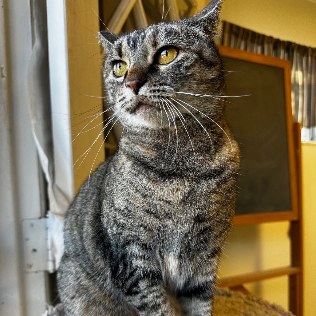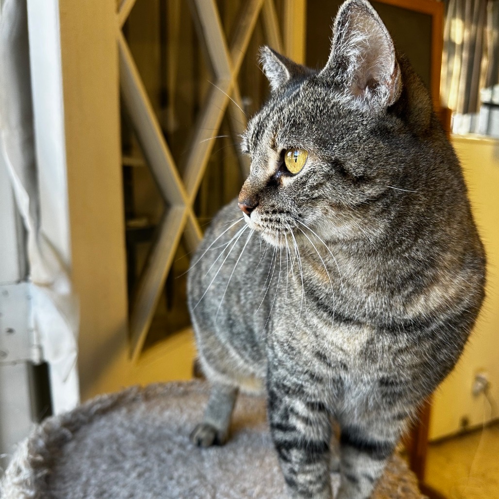Sienna is a delightful stubby version of a tabby cat, who walks through life on her tippie toes. This sweet girl prefers to hang with boys and plays intensely with her foster buddy Teddy. Her preference for humans is for females. Male humans are allowed to touch and carry (but not too long). When this girl picks her fav BFF she will sleep on that BFF chest in a complete state of relaxation. Her playful side comes out when toys are thrown around and balls bounce through the house. Sienna can be an only cat as she keeps to herself but a male companion close to her age range would be a great for her. She will be near you, not too clingy, not to meowy, not to in your face but she is right there where she can keep an eye on you and vice versa. She calmly endures a nail clipping and does not mind getting wet. Come meet this little girl and you will be smitten with her. Please contact the foster at albert@5starcomputing.com
