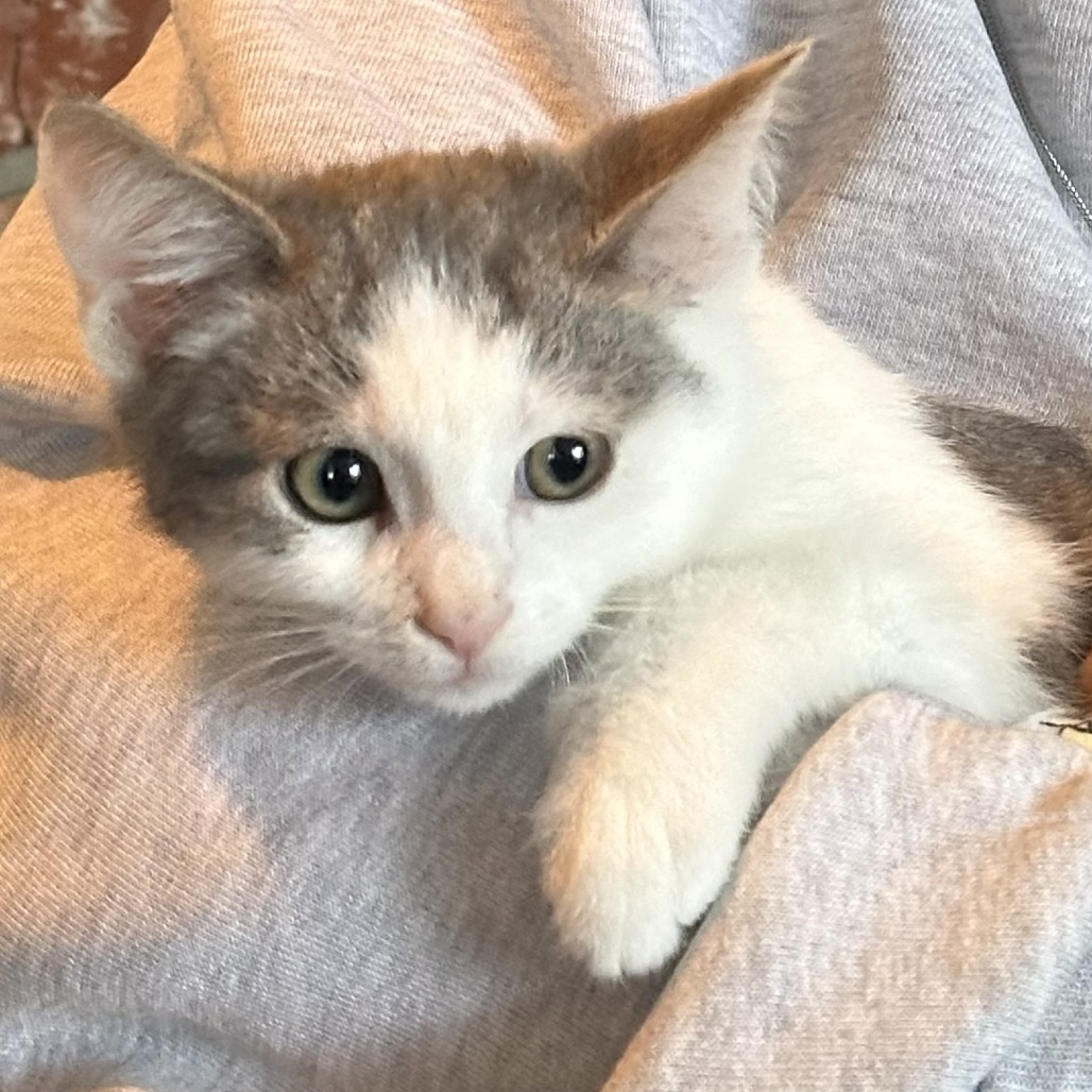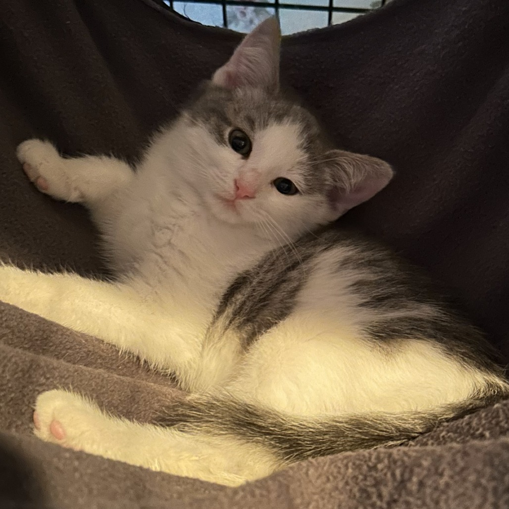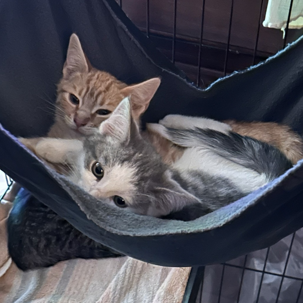 Billie is a three-month old male kitten full of playful curiosity and an easy-going nature. Totally Instagram-able, this fella will purr his way into your heart! Billie loves chasing fuzzy balls, feathery toys and gentle interplay with his littermates. He shows real feline intelligence and curiosity of his surroundings. He’s fascinated by the resident adult cats and shows sympathy for the huge ugly cat, also known as our Labrador retriever. He loves using the elongated play pen for zoomies, toy time and quality time with his siblings. KR volunteers rescued Billie from their backyard and he’s adapting well to human interaction. This guy is developing into a cuddle-bug. He enjoys snuggling in sweatshirts, gentle petting during Netflix sessions and accepts soft kisses on top of his head. He’s a great non-finicky eater, noshing on wet food, little bits of kibble and Churus (aka kitty churros) are a special treat that make him purr. Please contact the foster at dananneh@gmail.com