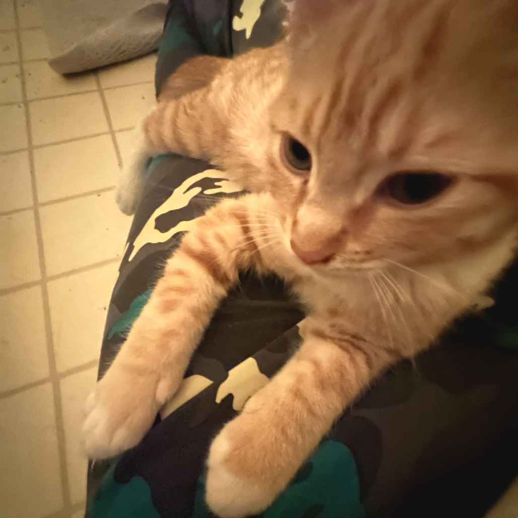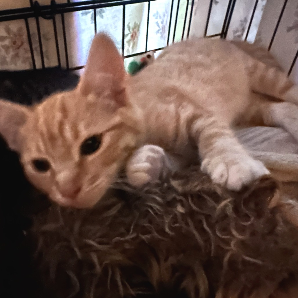 Hobbes is a kitten living up to the fun and slightly mischievous reputation of orange kitties. He loves to chase and be chased by his siblings and don’t even get him started on the wand toys – he tracks and attacks the feathers in ways that are as hilarious as they are entertaining. Likewise, he understands and loves the scratching post. He’ll take well to the ones you provide instead of using your furniture. Even though he is very playful, Hobbes projects so much energy into cuddling and being loved, you’ll believe you have a uniquely special feline family member. In no time at all he will own your heart and your home. KR volunteers rescued Hobbes from their backyard and the pampered indoor life suits him. After a solid workout, this beautiful orange tabby melts you with long pet and purr sessions. He likes scratches all over his ears, chin and head, gentle cuddles and a tasty treat. He also likes to be held while you watch your favorite movie and you just might find him fast asleep in your arms. In time he will learn how to move your fingers from the computer to his favorite scratchy parts! Hobbes is bonded to his brother Billie (KRLA-A-87524) and they must be adopted together. Please contact the foster at dananneh@gmail.com