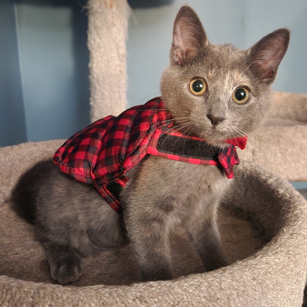 The wild creature you see before you is known as Lambchop. Named for her dense fur, the Lambchop is an affectionate but unpredictable animal. A dilute tortoiseshell cat, she has moments of love and adoration, which can shift quickly to that of mischief as the orange part of her fur takes over her brain. This kitten is looking for a new watering hole to make into her permanent den. What she brings to the pack is a zest for exploration, a hankering for cuddling with the pack leader (that's you!), and many, many opinions. The Lambchop is an vocal beast, capable of being heard across the room as she states her displeasure or needs to another member of the household. This could be new meetings with strangers, or simply deciding you aren't allowing her to steal your food. Either way, this creature will let you know where you stand at every-changing moment. Are you the right ecosystem for this cacophonous critter? Please know that kittens are typically recommended to go to a home with a built-in companion or to take home as a pair with another cat. Interested in adopting? Contact tinabixler68@gmail.com for more information.