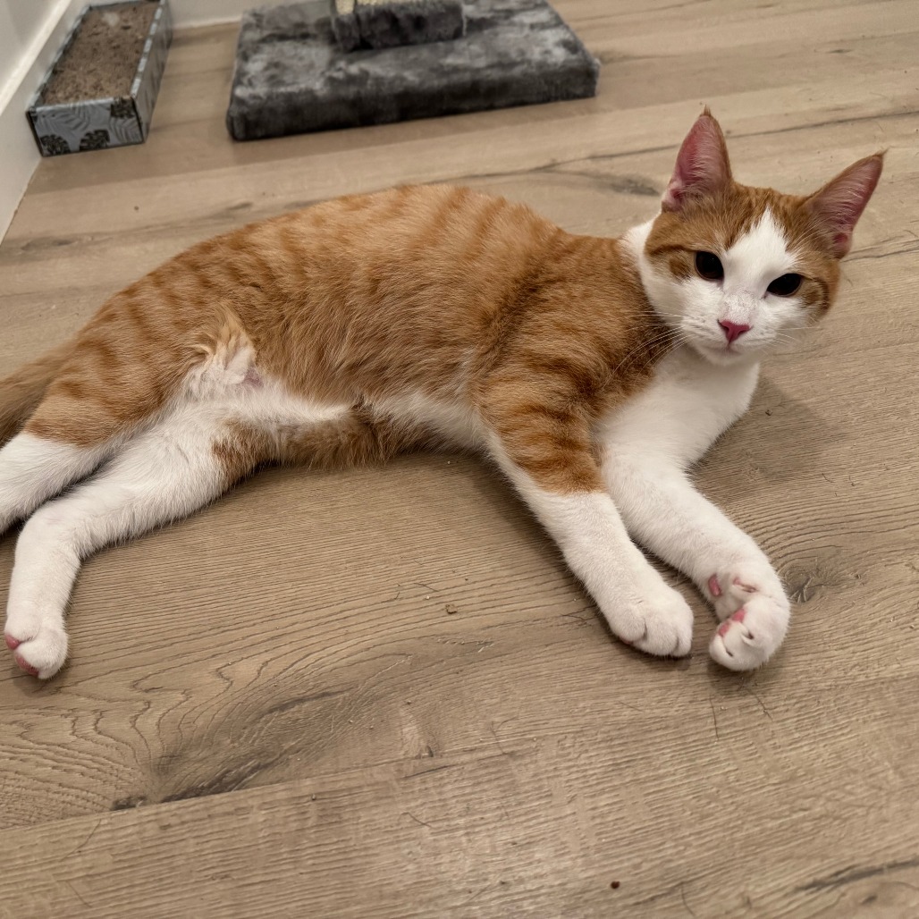 Theodore, or Teddy for short, is a sweet, friendly cat who is both energetic and easy going. He hops up for playtime and also enjoys lounging on his favorite cozy recliner. He loves sunning himself in the window, but will happily perk up for some play time with a wand toy! He is very curious and loves to explore the whole house. He really enjoys carefully sniffing before he decides his next move. Teddy enjoys a good cuddle, but is also happy to He gets along very well with all of the cats he has been fostered with as well as with his two brothers, Archibald (KRLA-A-87529) and Charles (KRLA-A-87530) who are also available for adoption. Teddy would do best in a home with other cats, plenty of windows, and spring toys! For more information on adopting Theodore, you may email his foster parent at catermeierhaus@gmail.com.