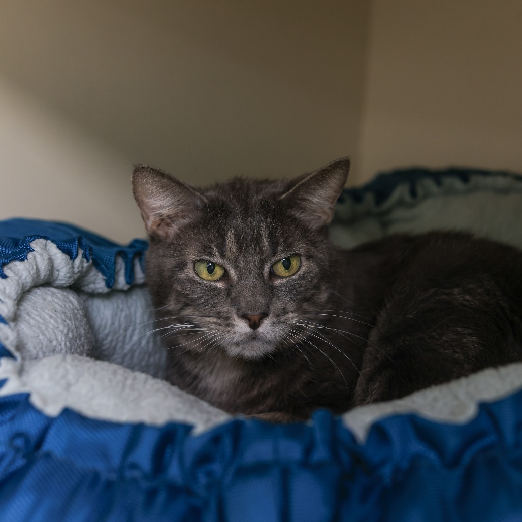 Meet Juniper, a charming senior kitty with a permanently grumpy expression that couldn’t be more misleading. Behind that serious face is a gentle, affectionate companion who loves nothing more than spending quiet time with her people. She may even curl up in your lap once she feels at home. Juniper shares a special bond with her best friend, River (KRLA-A-87555), and the two are looking for a home where they can stay together. They bring out the best in each other and will fill your space with warmth, companionship, and soft purrs. Juniper would thrive in a calm, peaceful home where she and River can relax, feel safe, and soak up plenty of affection. If you’re looking for a pair of loving, low-key companions who will happily keep you company, Juniper and River may be the perfect match. Please contact the foster at adoptions@kittenrescue.org