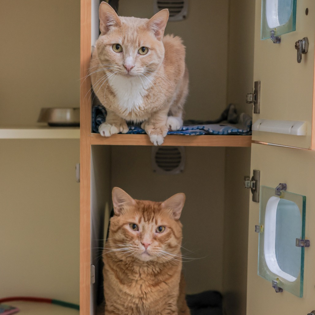 Meet Calvin, a charming orange polydactyl kitten with extra toes and extra sweetness to match. Calvin is the quieter half of this bonded brother duo—thoughtful, gentle, and happiest when he’s close to someone he trusts. He may take a moment to warm up, but once he does, you’ll discover a soft, affectionate boy who loves cozy naps, gentle pets, and following his brother’s lead. Calvin thrives with his best friend and brother, Hobbes (KRLA-A-87568), by his side. Hobbes gives him confidence, and Calvin returns the favor with loyal companionship and endless cuddles. These two are deeply bonded and must be adopted together, as they truly bring out the best in each other. Please note: Calvin must be adopted with his brother Hobbes KRLA-A-87568. Please contact the foster at manager@KittenRescue.org
