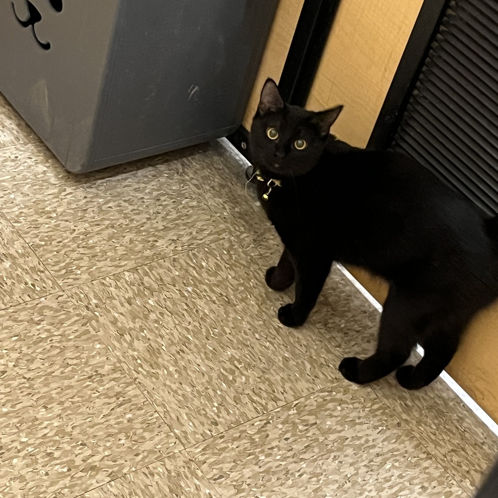 Raven is one of the six kittens born to mom, Piper. Piper printed six kittens exactly like her, solid black. Piper was taken indoors a few days before she gave birth by someone who was feeding her with a group of neighbors. All of the kittens were brought up with human interaction from day one. Raven is the shyest baby in the litter. All of her siblings are a lot more outgoing and independent. Raven is the one that is inseparable from her mom. Wherever Piper is, Raven will follow. Raven is always found lying on top, under, or right next to Piper. Raven would be best adopted with Piper (A-87578). Please contact the foster at rao_z@hotmail.com