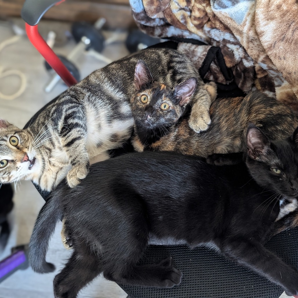 Dusty is a cuddle bug with absolutely no concept of personal space. He loves being near (and on) his favorite people. Lap? Perfect. Shoulder? Even better. Under the covers in the morning? Heck yes. He’s a total lover who will happily become your tiny shadow. When he’s not glued to you, he’s zooming around with his siblings -- Nimbus (87596), Spice (87595), and Pepper (87594). He’d love to be adopted with one of them so he always has a built-in wrestling buddy. If adopted solo, he’ll need another friendly cat to play and snuggle with. Dusty has plenty of kitten energy, but at heart he’s a sweet, gentle boy who just wants to be close to his people. He’s been raised in a work-from-home household, so he’s very comfortable with humans and other cats. He hasn’t met dogs yet, but with a proper introduction, he should do just fine. If you're interested in meeting Dusty, please contact the foster at sydneymitchel@gmail.com.