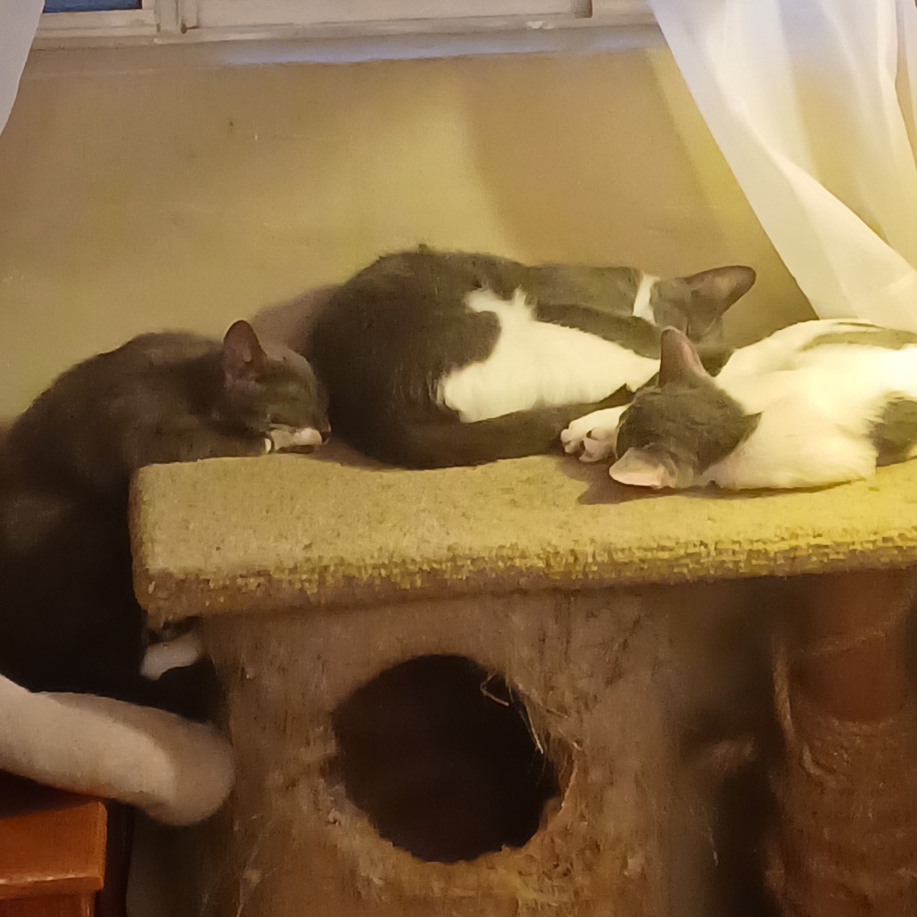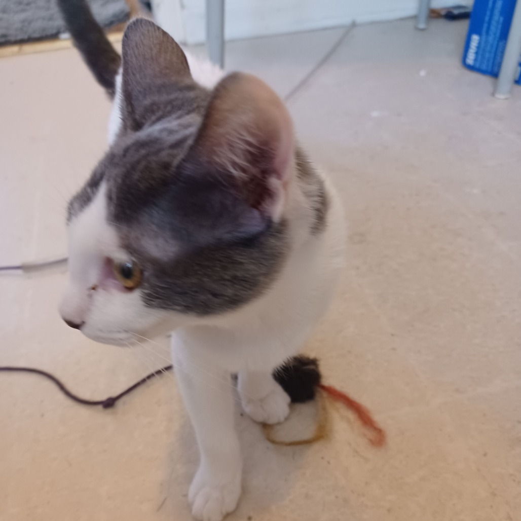 Roxy and her brother, Moxy, KRLA-A-87599 were abandoned with their mother, Foxy, KRLA-A-87597 on 9/11/25 at one of my four colonies in Vernon. Roxy was about 5 weeks old when found and very friendly and trusting. It was already a hot morning, and I had to leave them there as I was headed to work and could not keep them in a hot car. I ended up racing back on my lunch break to get them. Back at work, I parked in the shade and had the windows rolled down enough for a breeze to flow thru the car, and left them there. I checked on them periodically and found the kittens content nursing off their mom. Roxy and her brother, Moxy, are super high energy kittens who are constantly running and playing from the minute they wake up until I turn off the light to go to sleep. Thankfully they both sleep soundly thru the night. Roxy is very curious and likes to investigate open cabinets, so I have to watch where she goes or gets into as she seems to have no fear. Hoping Roxy and her brother, Moxy, would be adopted together as they are constantly playing and ultimately fall asleep together. Please contact the foster at furball641@yahoo.com