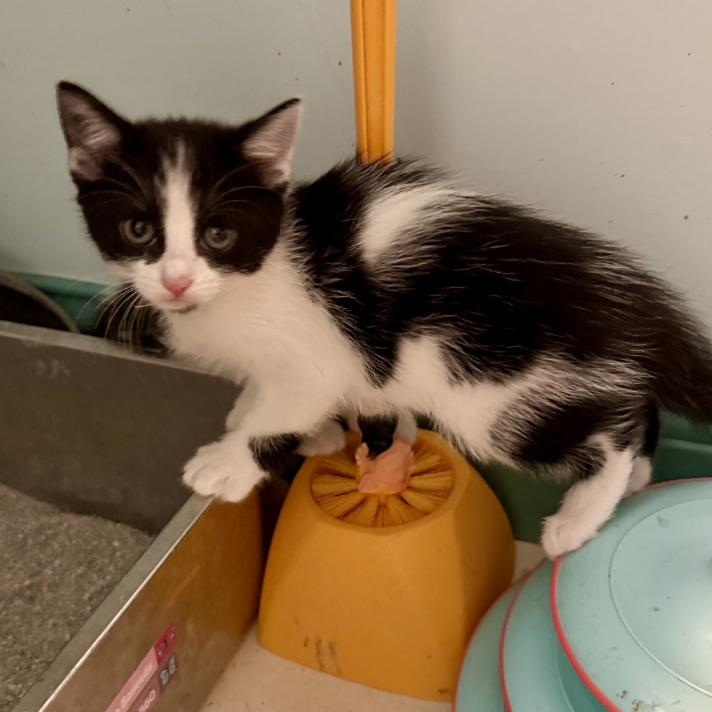 Jessica and her siblings are very lucky kittens! They were born in a foster home after their very pregnant Mama was rescued from the streets. Jessica is a super snuggly and affectionate, very playful kitten! She can play for hours with all of her siblings but also she really loves her humans. She starts her motor purring as soon as you give her any attention! Jessica would love to be adopted with any of her siblings Jacob KRLA-A-87637, Joey KRLA-A-87636, Jaclyn KRLA-A-87639, or Mama Juniper KRLA-A- 87635. If you already have a young, playful kitty at home then she can bond with your kitty too. Jessica would do well in almost any home. She gets along with other kitties and would be great in a home with gentle, loving children. She has also been fostered in a home with small dogs. She will brighten any home with lots of love and her silly kitten antics. Please contact the foster at annmariehair@gmail.com
