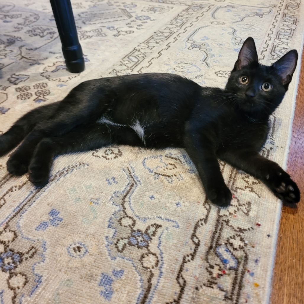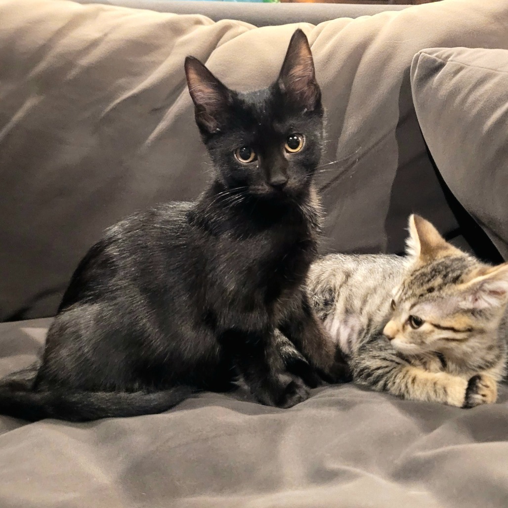Spider is a confident, outgoing kitten with a big heart and even bigger energy. He approaches life with curiosity and enthusiasm and jumps right into playtime with kittens and adult cats alike. He loves chasing toys, pouncing on wand teasers, and turning everyday moments into games. When he’s not zooming around, Spider happily settles in for cuddles and enjoys being close to his people. This friendly boy thrives in a social home environment. He has lived comfortably with a young child and does well with the normal sights, sounds, and activity of family life. Spider isn’t shy—he seeks out interaction and often follows his foster family from room to room, wanting to be part of whatever is happening. He balances his playful energy with genuine affection, making him both an entertaining and loving companion. Spider would do best in a home where he can continue to stay active and engaged. He would be an excellent match for a family with children, other cats, or anyone looking for a social, people-oriented kitten who enjoys both playtime and snuggles. With his friendly personality, adaptability, and joyful spirit, Spider is ready to bring fun, warmth, and companionship to his future home. Please contact the foster at candace8027@gmail.com