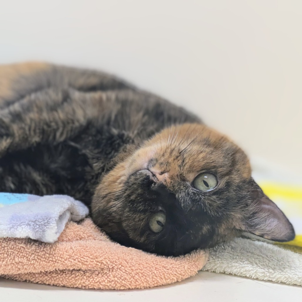 Cappuccino is a sweet and spirited girl with a unique little wobble that makes her all the more special. Cappuccino has ataxia, which simply means her movements can be a bit uncoordinated and may sway or stumble slightly when she walks. It doesn’t slow her down much, though. She still gets around well and can even hop up onto lower furniture to keep an eye on her surroundings. Cappuccino also has some mild incontinence. She will sometimes use the litter box, but she does have occasional accidents, so she’ll do best in a home that’s understanding and prepared for a little extra cleanup. Despite these challenges, Cappuccino is full of life and curiosity. She loves batting at ball track towers and can entertain herself (and you) for ages with her playful energy. She’s also very people-oriented and has a chatty side, happily “talking” to you throughout the day. Cappuccino is looking for a patient, compassionate home that will appreciate her quirks and celebrate her joyful personality. In return, she’ll bring endless charm, entertainment, and affection to your life. Please contact the foster at adoptions@kittenrescue.org