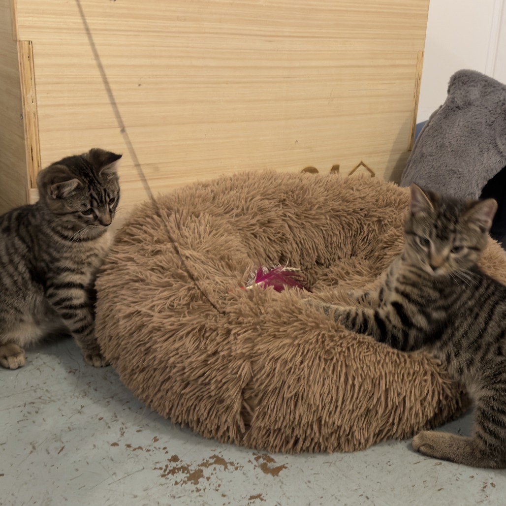 Max and Milo, KRLA-A-87690, are gorgeous kittens that are nearly identical brothers. They are brown tabbies. They were born in September 2025. They are very happy, healthy, and playful young lads looking for a forever home. These guys are a bonded pair so they will need to be adopted together. Please contact the foster at ccarlisle08@gmail.com