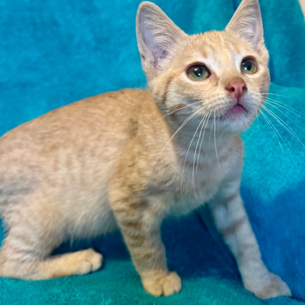 Alfalfa is perfect in every way; his orange fur is stunning and so are his big green eyes. He has a belly that demands kisses. When he's not running around playing with his siblings, he would like to be cuddled in your lap and most surely purr himself to sleep at night on your bed. He will keep you laughing for hours, watching him play. He is used to a small friendly dog. Alfalfa needs to go to a home with a playmate or can be adopted with one of his siblings; Froggy (KRLA-A-87693), Spanky (KRLA-A-87695), or Porky (KRLA-A-87692). Please contact the foster at Savetinylives@gmail.com