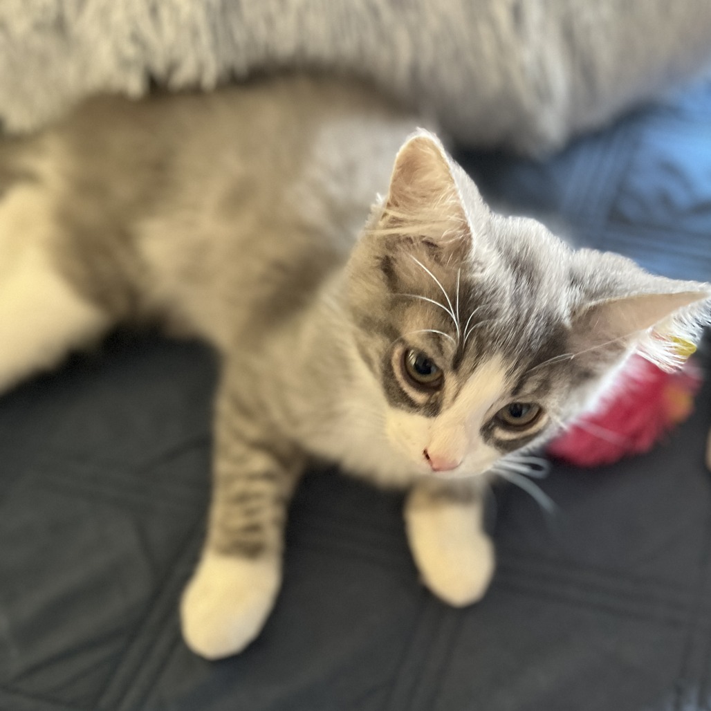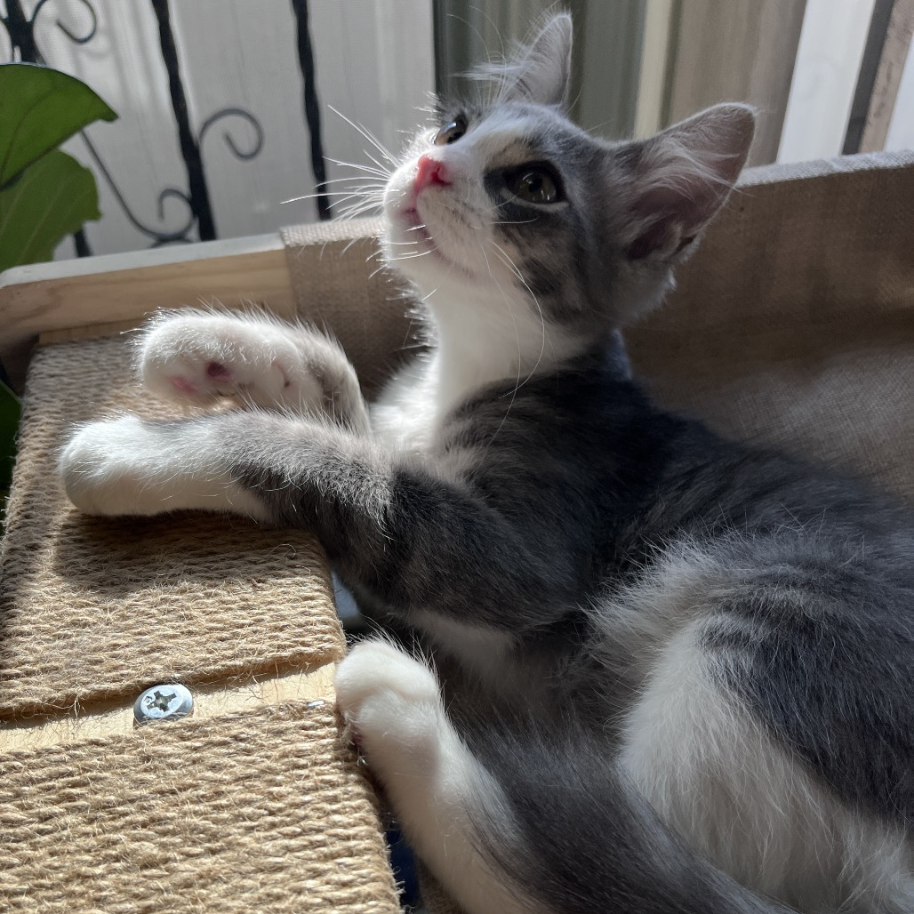 Meet Rain — The Fluffy, Goofy, Heart-Melting Kitten Rain is a Domestic Medium-Hair fluffball with a doll-like face, soulful expressive eyes, and the fluffiest little tail you’ve ever seen — plus four tiny white “crew socks” that make him look like he’s always ready for a tiny adventure! He’s a happy-go-lucky, gentle soul who wins hearts instantly — whether it’s with humans, adult cats, or fellow kittens. Playful, curious, and very food-motivated (treats = instant best friend status), he’s always up for: Chasing the laser dot Watching “cat TV” on YouTube Napping in sunny spots Flopping beside you for belly rubs (his favorite — he’ll literally demand them!) Chasing his siblings (or yours!) Rescued during a storm with his mom Mulan and siblings, Rain adapted to indoor life like a pro. He’s adventurous by day, snuggly by night — and absolutely thrives with companionship. He’s very comfortable with humans and other cats. He hasn’t met dogs yet, but with a proper introduction, he should do just fine. He’d love to go home on his own, but even better, with a buddy — his sisters Storm (KRLA-A-87776), or Mystique (KRLA-A-87775), his mom Mulan (KRLA-A-87772), or his foster aunt Fluffy (KRLA-A-87773). You can also pair him with your own cat or kitten — two cats = double the joy, double the love… and company when you’re out! Ready to bring home this handsome, joyful, affectionate fluffball? Contact his foster mom at 323.723.2328 or DM on Instagram @desperate_house_kitties to meet this sweetest boy today.