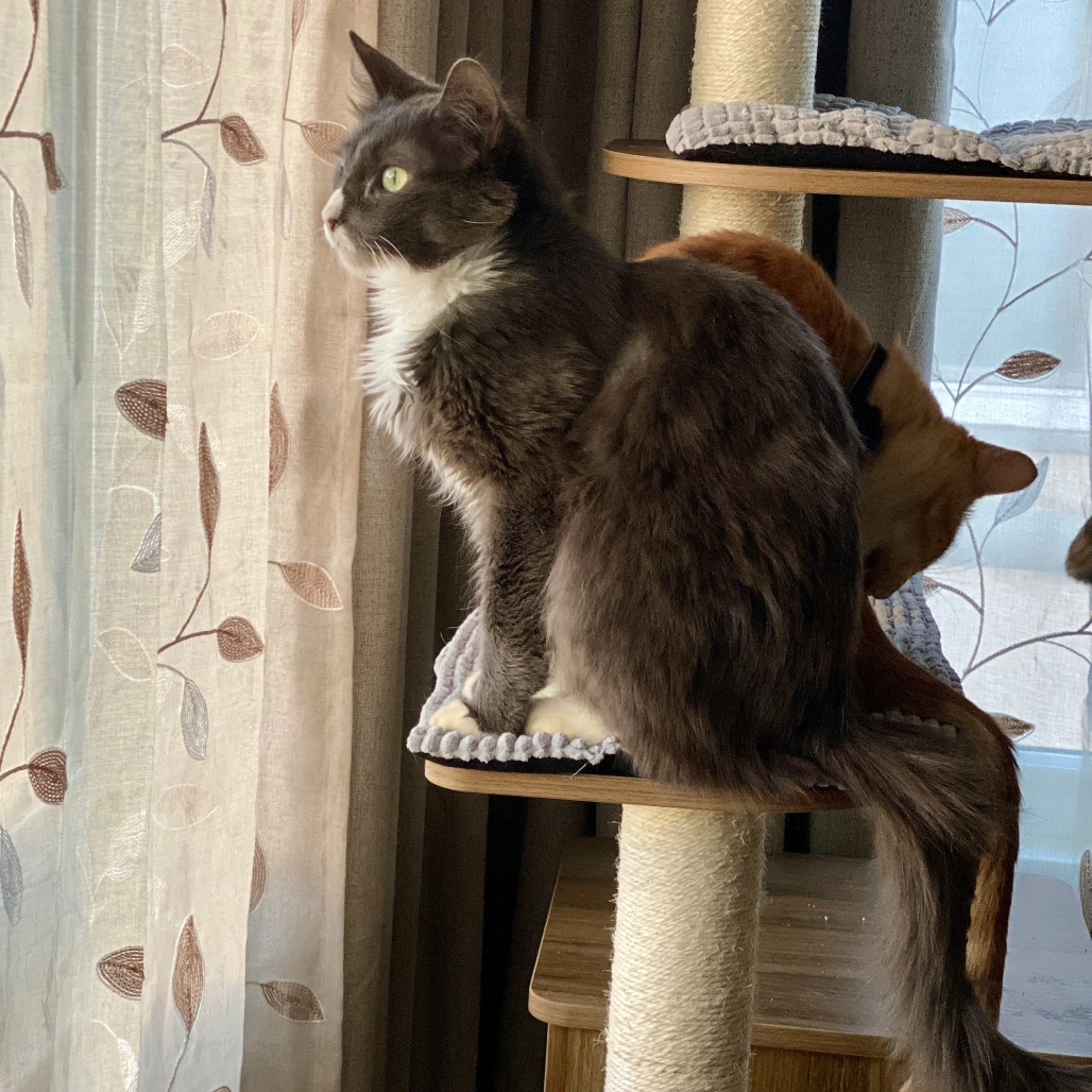 Mr. Cooper is a handsome gentleman with a beautiful, fluffy grey and white tuxedo coat - and a heart full of love who is looking for a loving home where he can feel safe and cherished. Rescued from an animal hoarding situation, Mr. Cooper has come a long way and is now ready to find the calm, stable home he deserves. Despite his past, he is incredibly sweet and enjoys gentle pets and affection. Mr. Cooper is the kind of cat who appreciates the simple things in life - his favorite pastime is lounging in a cozy cat tree by the window, happily watching birds and squirrels go by. It’s his version of “cat TV,” and he could spend hours there content and relaxed. Because of his background, Mr. Cooper would do best in an adult-only home where things are predictable and peaceful. He also thrives with feline companionship and would do best in a home with another friendly, easygoing cat. If you already have a social kitty, Mr. Cooper could be the perfect companion. If you’re looking to adopt a pair, you may want to consider Phoenix (KRLA-A-85158), who was rescued from the same home and would make a wonderful addition alongside Mr. Cooper. Interested in giving Mr. Cooper the life he deserves? Reach out to his foster mom and learn more or schedule a meet & greet! Please contact the foster at kittyLINQ@gmail.com