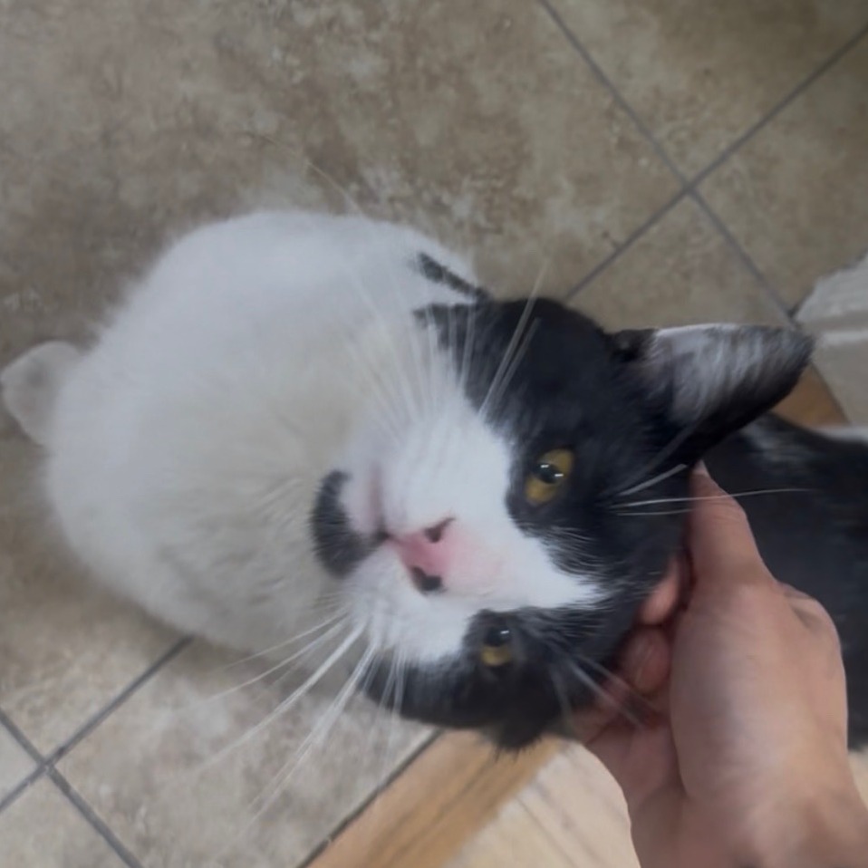Buster is a soft, handsome boy cat with a big head and a funny, grumpy face, even though he's actually a really happy, goofy guy. He's a real boy's boy -- I guess you could call him a "dude." He's incredibly affectionate and absolutely loves his humans. He'll follow you around, greet you at the door, hang out with you at the computer or wherever you are, asking for pets and scritches; and he loves it if you play with him, especially with the wand toy! Buster's not big on lap time or being carried. He doesn't struggle too much to get away, but he doesn't seem to understand it. Considering he was found abandoned on the street, we assume he didn't have the nicest owners before, and chances are they didn't show him a lot of affection. We'll never know. But Buster is extremely loving and gentle and very engaged, basically just preferring to be with you and next to you, as opposed to on you. He has a good appetite and fastidious litter box habits, and is an all-around good boy. He's not big on sharing his human with other cats, so he'd be best as an only cat. If you bring Buster into your home, he'll offer you devoted and adoring companionship, as only a kitty can do. Please contact the foster at susanwinsberg@sbcglobal.net