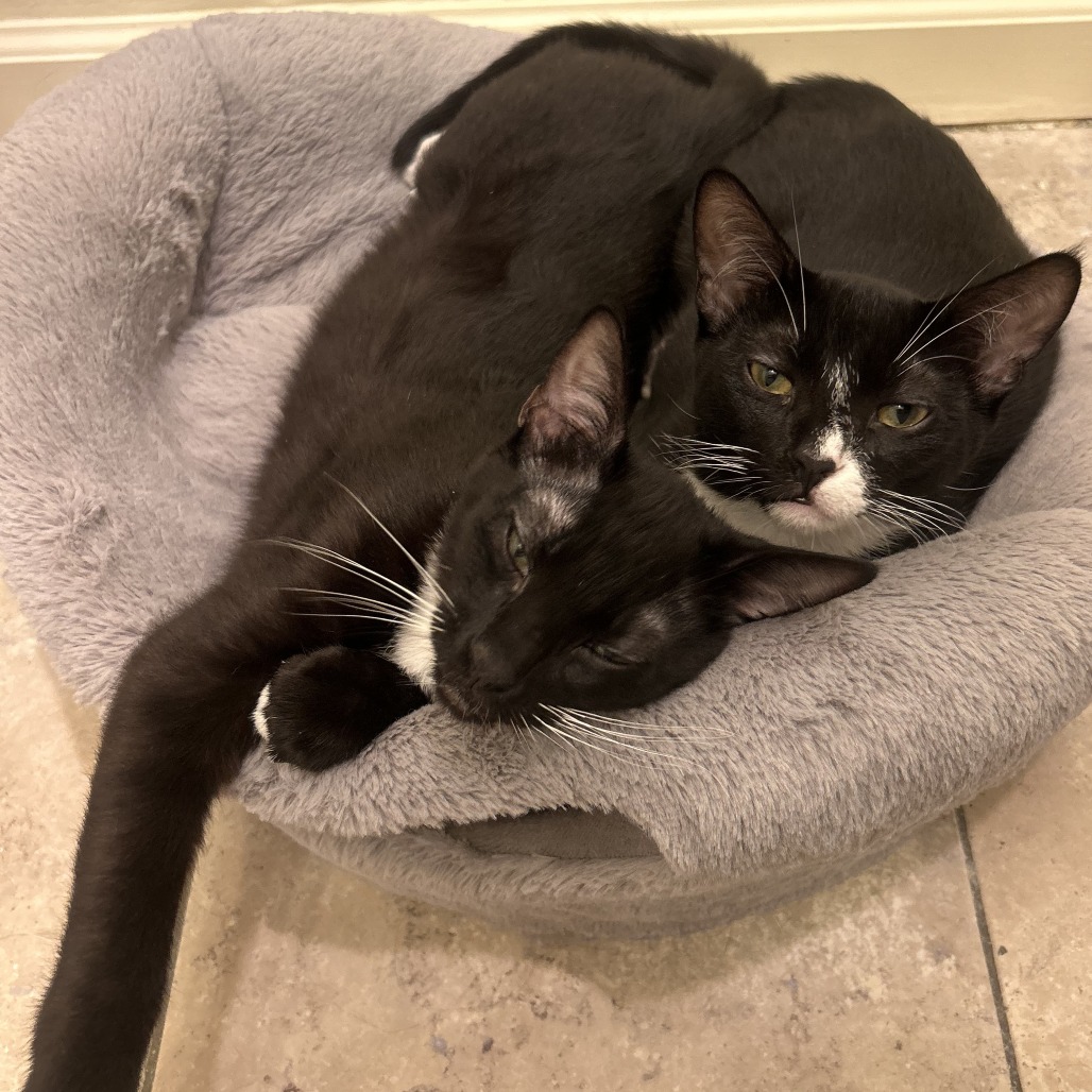 Valentin is a playful, smart kitten who was rescued from the streets of LA with his mom and brother, Q. He's observant and likes to get a feel for a situation before jumping in. He's initially timid and wary of anything unfamiliar, but once he feels safe, his personality emerges. He loves to wrestle with his brother and chase wand toys, and he's very food motivated - Churu is the way to his heart! Valentin is still learning how to accept love and takes some time to warm up to people. He's recently learned that cheek scratches are the best! Valentin would need a patient owner who will help him come out of his shell. While he currently does not seek out human affection, he purrs when pet and is bound to thrive with time and love. We would love to see Valentin get adopted with his brother, Q (KRLA-A-87826), and he would do best in a home with another cat. Please contact the foster at meimeitannehill@gmail.com