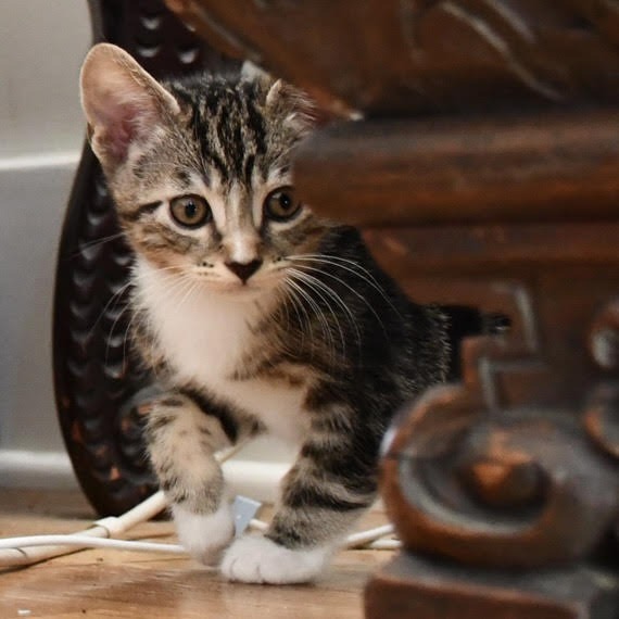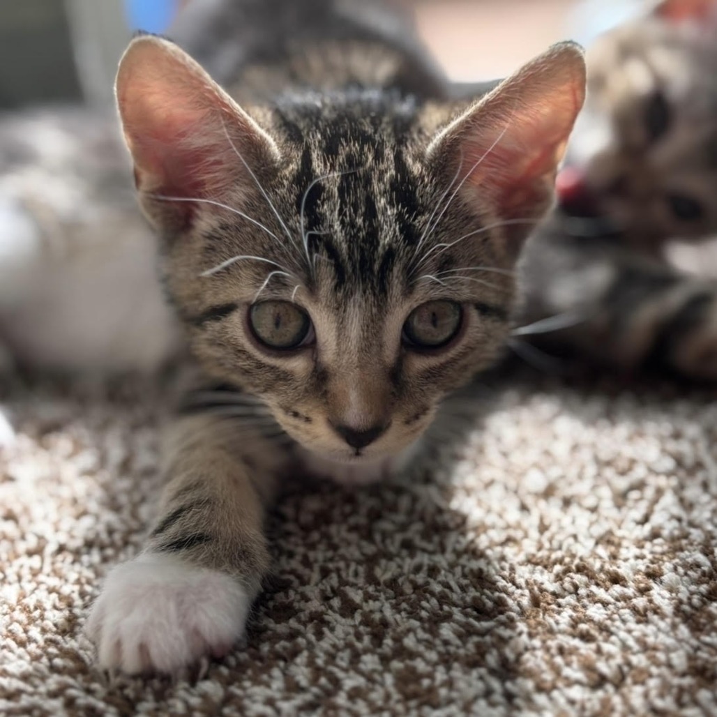 Turtle is a rambunctious, intelligent, and confident little kitten who is always up for playtime and snuggles. When it’s time to play, Turtle loves to chase a wand toy, or play solo with a little mouse that he must keep from all the other kittens. He is a beautiful brown, black and white tabby, with stunning brown eyes. Turtle loves to follow you around the house, supervising any activities. He is the biggest of his litter, but don’t let that fool you, he’s the perfect little lovebug looking to nap on your shoulder by the top of the couch. As a young, active kitten, he needs to be adopted into a home with another young cat or kitten, like one of his siblings, Athena, Bengal, Cashew or Weslie (KRLA-A- 87841, 87842, 87843, 87845). Please contact the foster at echoparkkitten@gmail.com