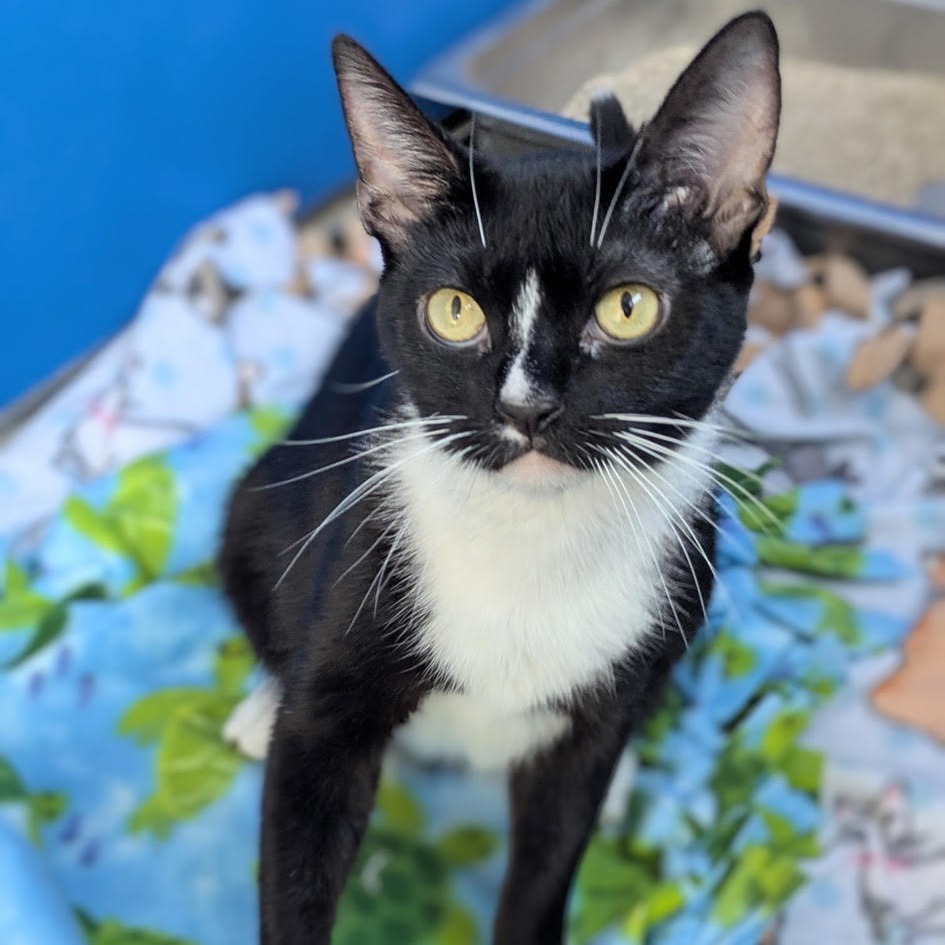 This self-confident young cat has just a touch of white on her nose that gives her the cutest expression! With her delicate, small head and four white mittens on her paws, and just the tiniest tip of white at the end of her tail, she’s a classic black and white! Loving super sweet, Punkin is curious, friendly and loving and has been known to be a bit of a purr machine. She’s on a special diet but otherwise healthy and she’d like nothing more than to come check out your house and make it her new forever home! Please contact her foster at orlyahar@gmail.com.