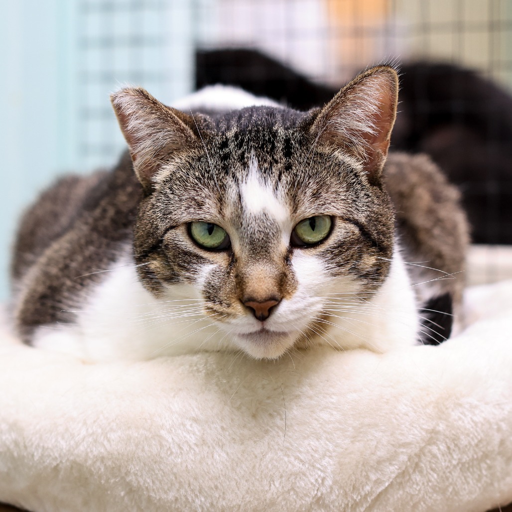 Luna is the confident half of this dynamic duo. Friendly, curious, and self-assured, she helps pave the way in new environments and gives Promise (KRLA-A-3608) the courage to follow along. Luna has a warm, reassuring presence and clearly takes her role as Promise’s emotional support very seriously. Luna and Promise met at one of our cat cafés and quickly became inseparable. They were adopted together and recently returned to us due to an unforeseen family emergency — a heartbreaking situation that had nothing to do with these wonderful girls. Through it all, Luna has remained Promise’s steady anchor and closest companion. Luna would thrive in a home where she can continue to be both a beloved pet and a supportive best friend. She’s affectionate, adaptable, and ready to help Promise settle into their next — and truly forever — home. Luna must be adopted together with Promise. Please contact the foster at manager@KittenRescue.org
