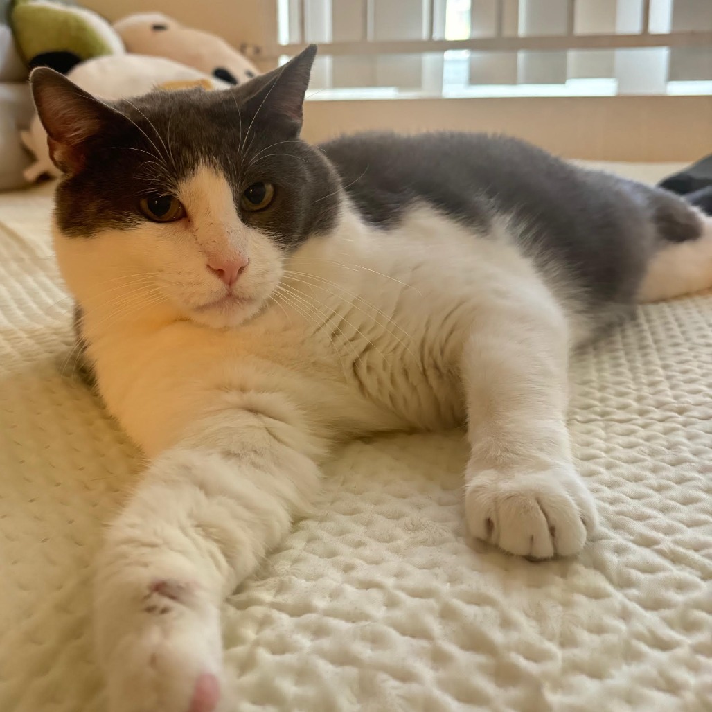 Zeke is a handsome, gentle guy who enjoys nothing more than long naps and loving on his human. He is serious about mealtime, but chill about everything else. He loves head scratches and full body pets. He isn’t terribly playful and prefers to lounge on the couch or look out the window. He is a loving guy. Zeke does fine with other cats but is also happy as a solo. Zeke was adopted from Kitten Rescue back in 2023, but was recently returned when his adopter became engaged to someone with severe cat allergies. Zeke is now looking for a true forever home and he will reward his person or family with so much love. Follow Zeke and his foster siblings on IG @kizmetkats. Please contact the foster at kizmetkats@gmail.com