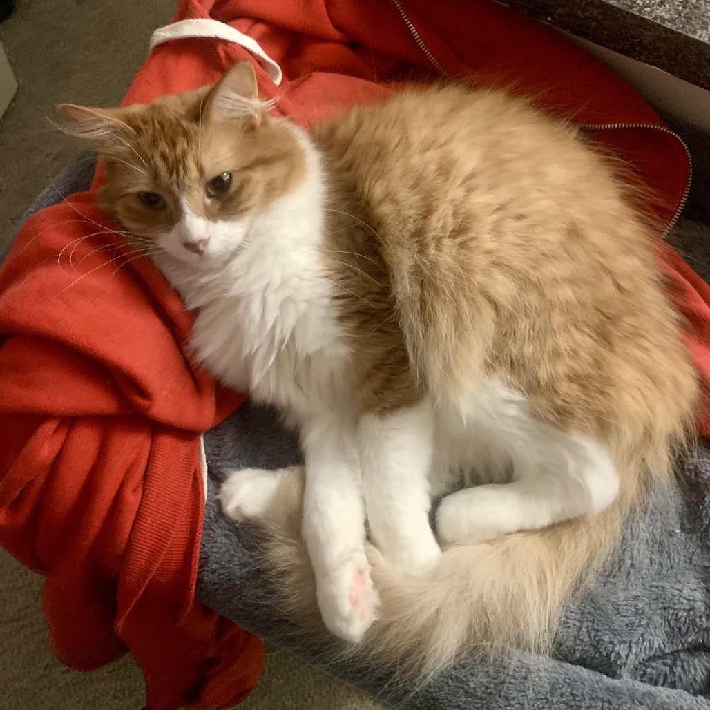 Have you ever dreamed of living alongside a real life beanie baby? Well little Moo can make your dreams come true! Moo Moo is an absolutely gorgeous and rare orange tabby with a cute white belly and white socks! She sports a long coat that adds to her doll-like appearance. While she is as cute as can be, she is also just as mischievous! She spends most of her time climbing, zooming, and playing with her sisters in an unrelenting show of chaos. Moo then will settle down for a nice cuddle alongside her humans paired with nonstop purrs to remind us just how precious she is and to forgive her for the messes she has made all throughout the house. She would be best suited for a human who has lots of time and attention to shower her with daily. She has an obsession with play mice, loves wand toys, and enjoys stealing everyone else’s toys most of all! Moo Moo is looking for a home alongside her sister, Oink,KRLA-A-4701, and she will NOT be considered for a solo adoption under any circumstance as they are very bonded. To see more photos and videos of Moo, go to @carebykylieb on instagram. Please contact the foster at carebykylieb@gmail.com