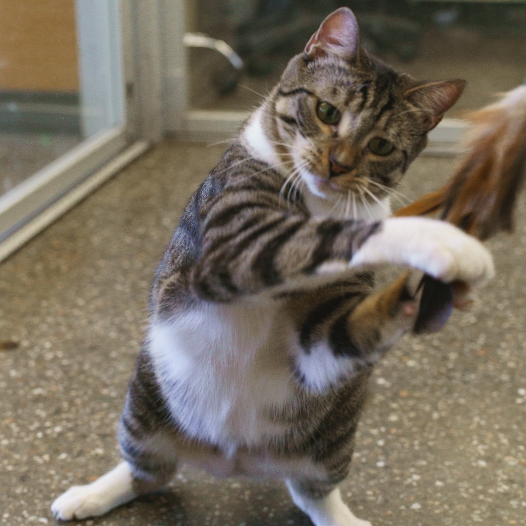 Watson is a handsome short-haired brown tabby and white male young adult with ever-so-slightly crossed eyes. He and sister Hana (KRLA-A-7675) are a super sweet, bonded pair who are looking for a home together in time for the holidays! Their personalities are complementary -- Watson is more mellow and Hana is more fiery. They enjoy doing most things together, including playing and sleeping. They are both very sweet, active, playful, and mischievous in the best possible way! Please contact the foster at andrea91020@sbcglobal.net.