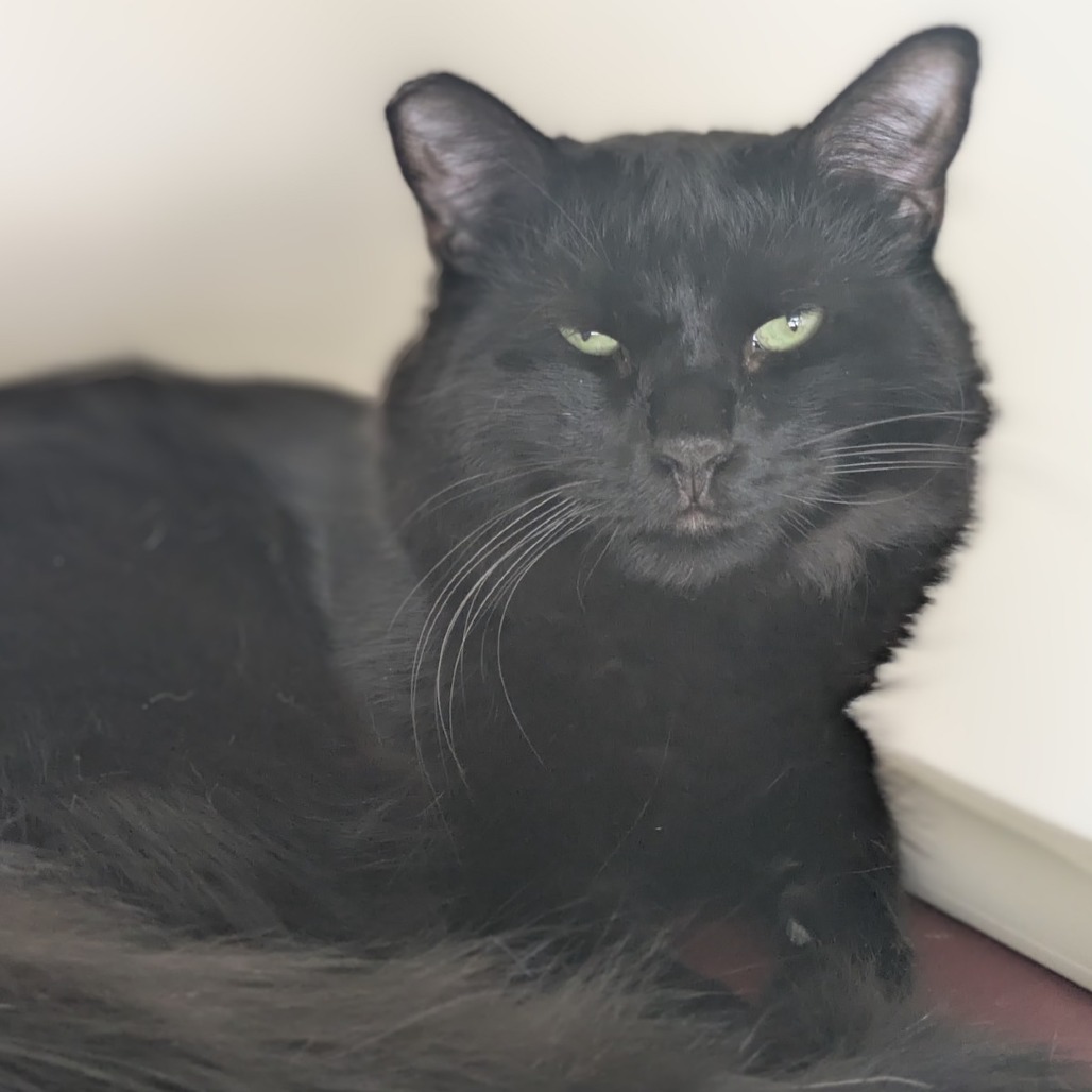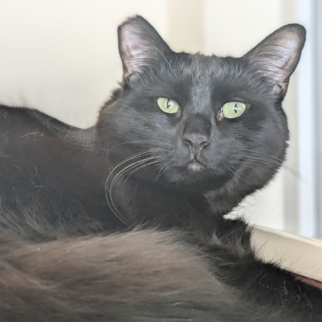Handsome Hank is a stunner with his long black coat and pretty eyes. A shy guy, Hank would love a quiet place to snooze next to a window or a in corner. He gets along with other cats, and loves treats and chillin'. Hank will need a home with a patient adopter who will let him acclimate at his own pace and gain his trust. Come meet Handsome Hank at Perry's Place today! For more information, contact his foster: orlyahar@gmail.com