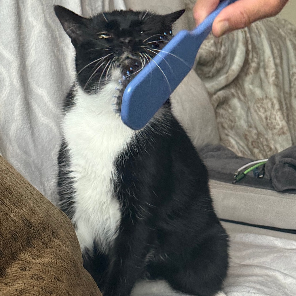 Lady is a sweet, loyal and affectionate cat. She acts just like your shadow, following you wherever you go. She’s extremely chill and can veg out with you for hours. Lady loves being near her person, cuddling, and nuzzling her head into yours. Due to her past having been kicked out of her home, she can be a little skittish at times, but she truly has endless love to give. Her favorite pastimes are getting brushed, eating, playing with stringy things, and watching anime. She would thrive best as the only cat in the home, but she's currently being trained to do well around others. With the right introduction, she may be able to adapt. With time, love and trust she can truly become your new bestie. Please contact the foster at 13sheilag@gmail.com