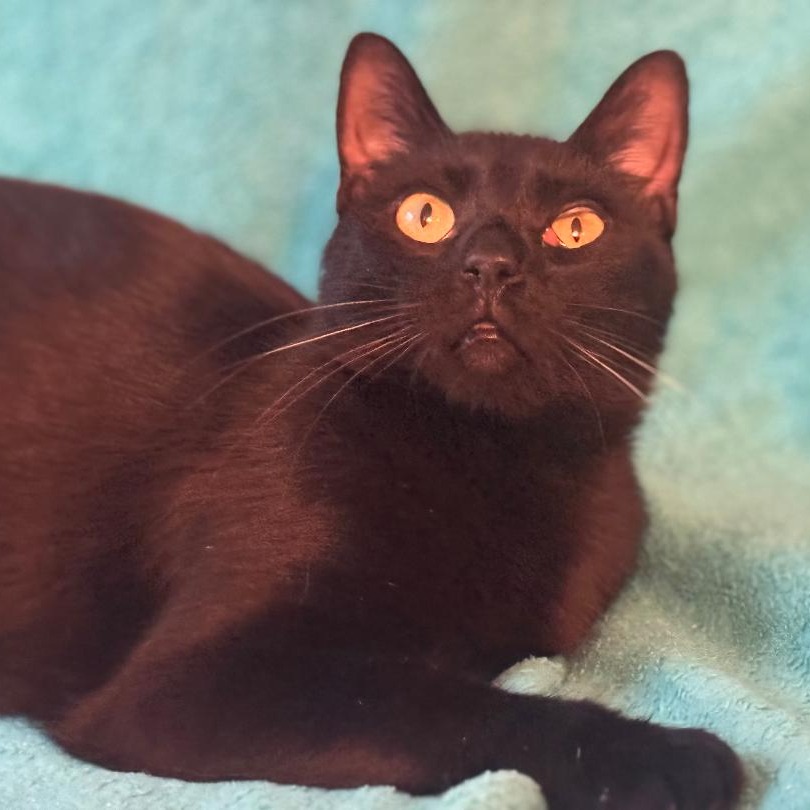 Rico Suave is very shiny cat who is warm, loving, and curious. He is sweet and outgoing and will love to sleep on your bed at night and curl up next to you at almost any time. He is still long and lean and playful, entertaining himself with things he finds around the house and his cat toys. He gets along well with other cats and a small dog. He would be gentle with children and would make and loving and entertaining addition to almost any home. He is an FIP survivor from when he was a small kitten but is expected to live a full lifestyle same as any other cat. Please consider giving this beautiful and shiny boy his forever home. Please contact the foster at SaveTinyLives@gmail.com
